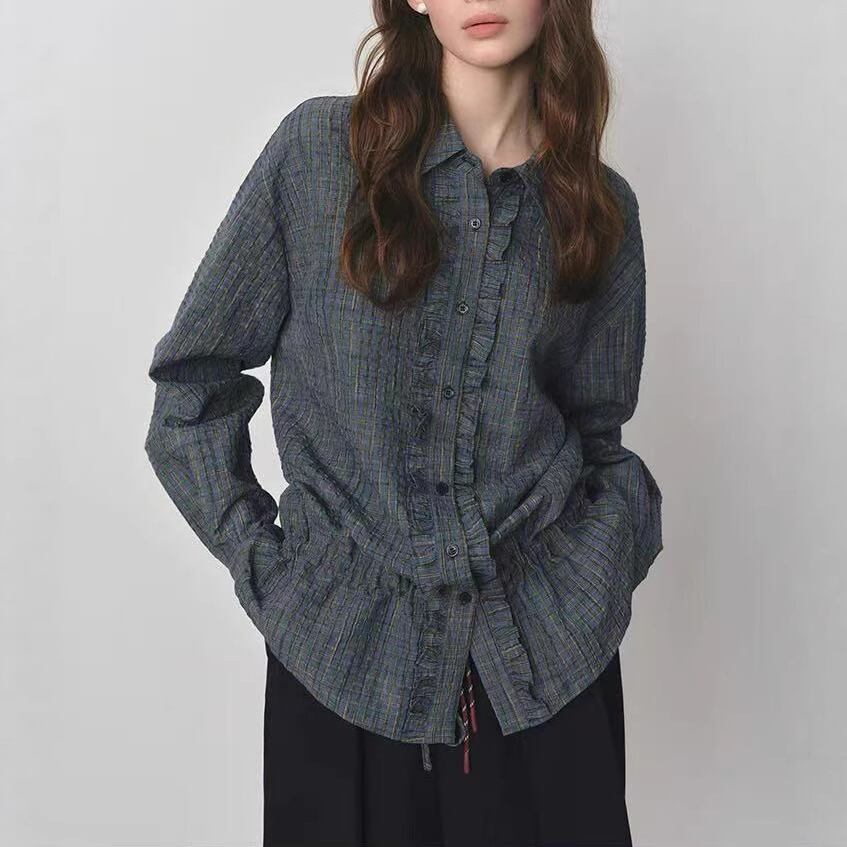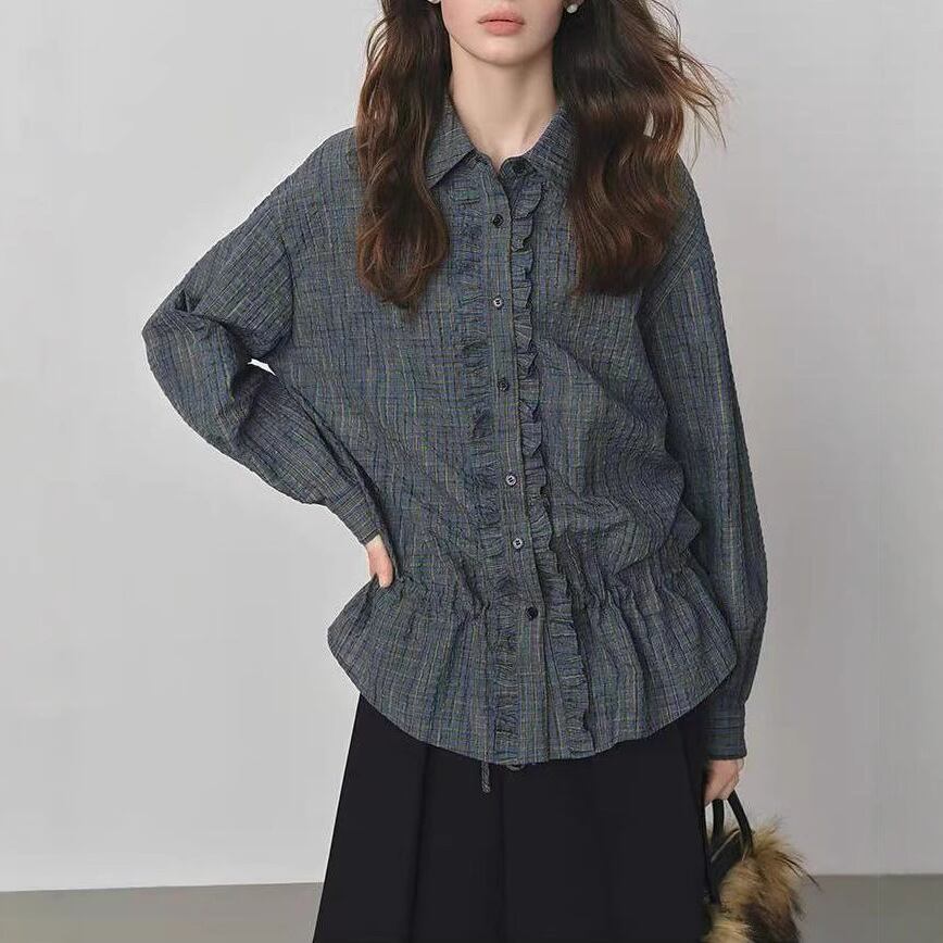 【ブラウス】 ブラウス レディース 大人 可愛い トップス シャツ ブラウス 韓国 ブラウス 春 秋 冬 20代 30代 40代 シンプルオフィス レディース 長袖 フォーマル 体型カバー きれいめ チェック ネイビー 青 S M L XL