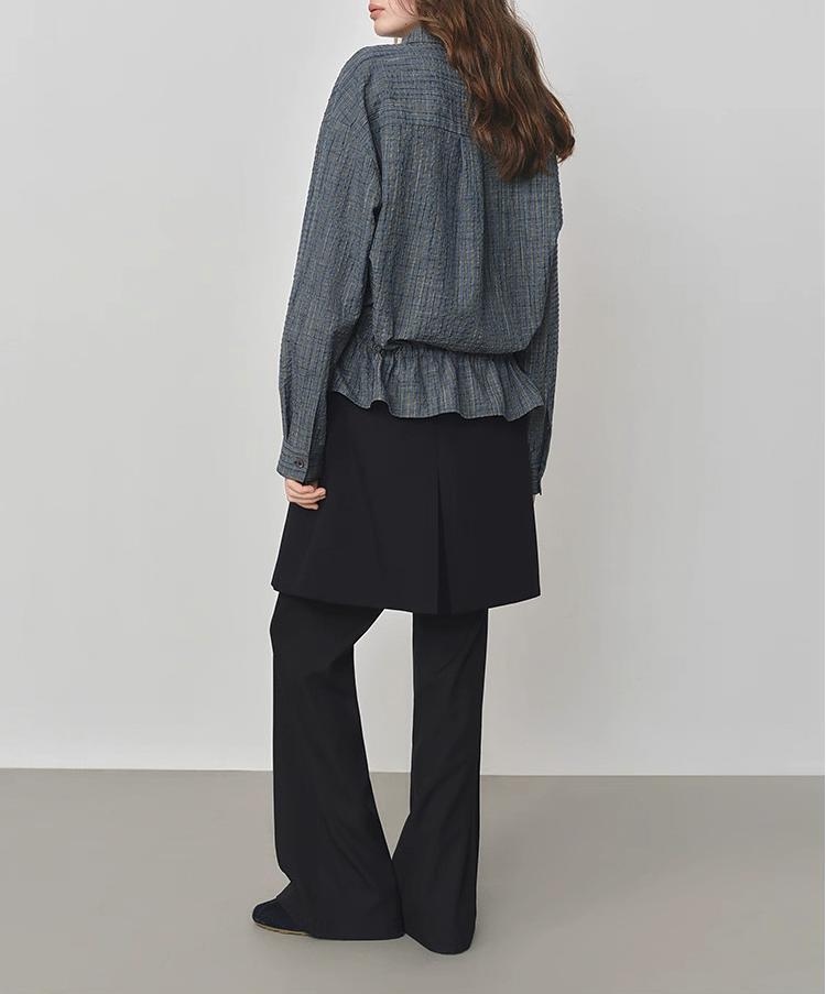 ウエストゴム入りでバックスタイルも映えペプラム風のスタイルに。