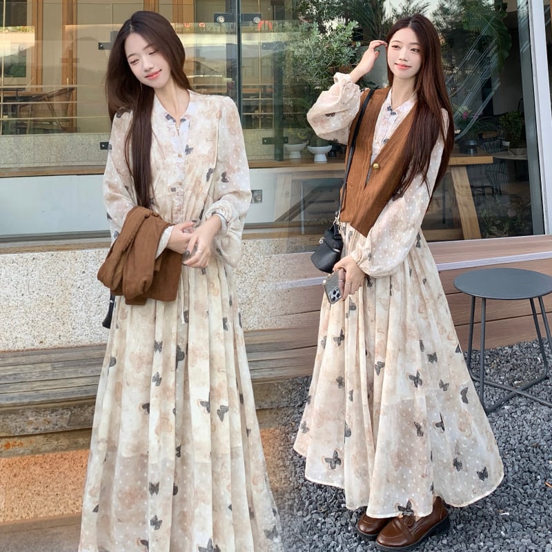 【ワンピース】大きいサイズ ワンピース レディース おしゃれ きれいめ 可愛い 春 秋 冬 ワンピース 20代 30代 40代 ロング ワンピース 秋冬 ワンピースドレス 韓国 ワンピース ドレス ワンピース 蝶 バタフライ L XL 2XL 3XL 4XL
