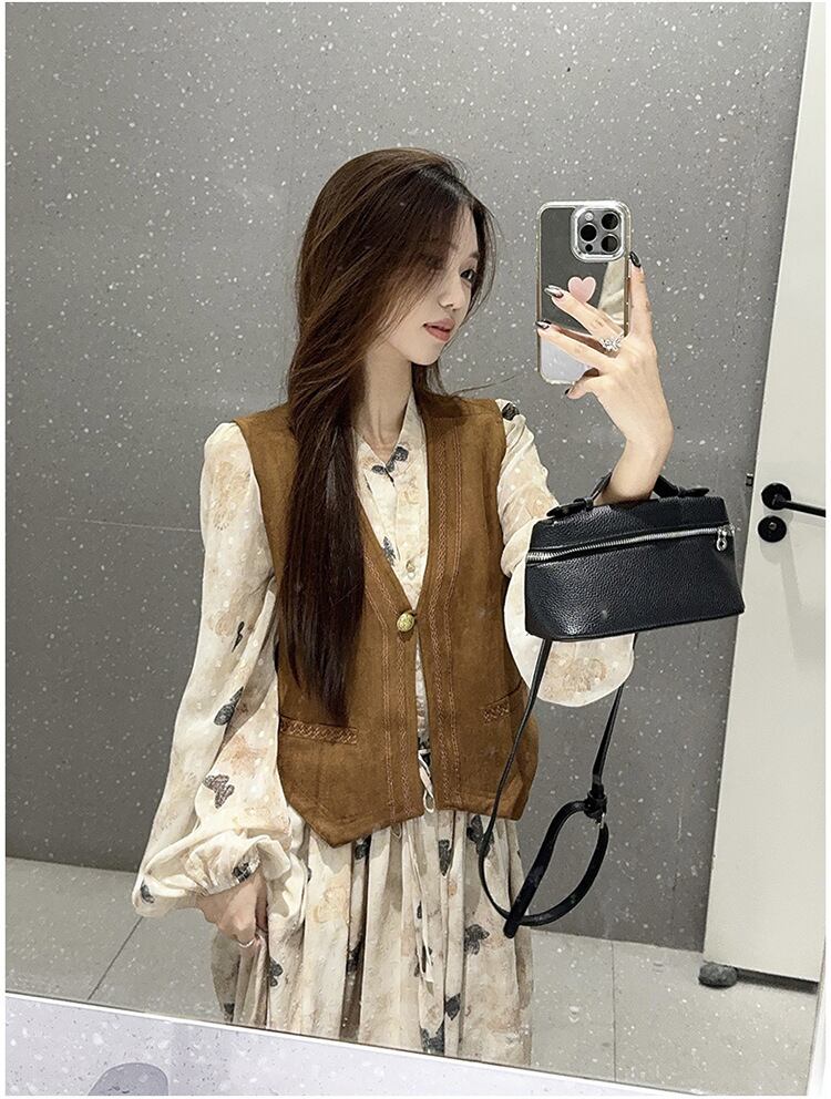 シフォン素材で肌寒い日はカーディガンやジャケットを羽織れば