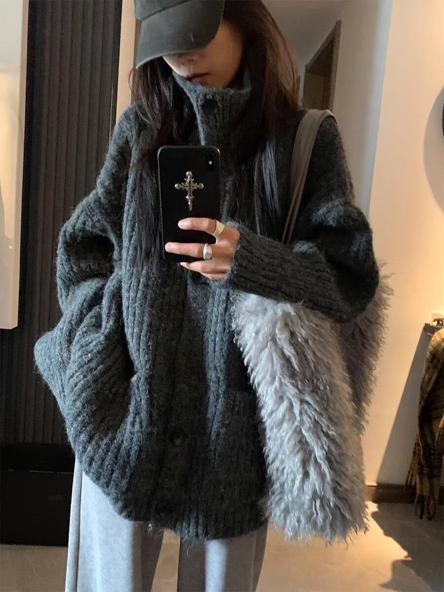 大人カジュアルなオーバーサイズのニットカーディガン。