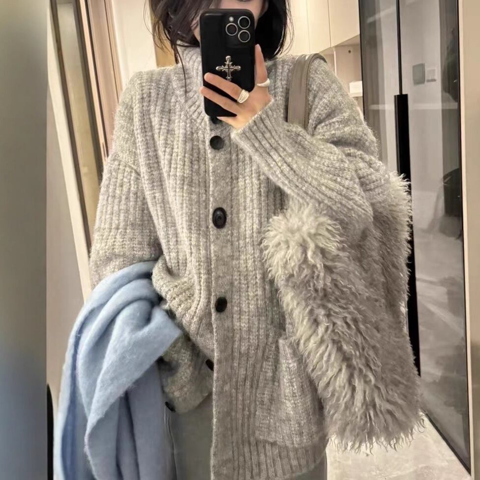 【カーディガン】 カーディガン レディース おしゃれ 韓国 春 秋 冬 20代 30代 40代 ニット カーディガン 長袖 トップス ベージュ ライトグレー ダークグレー ブラウン 茶色