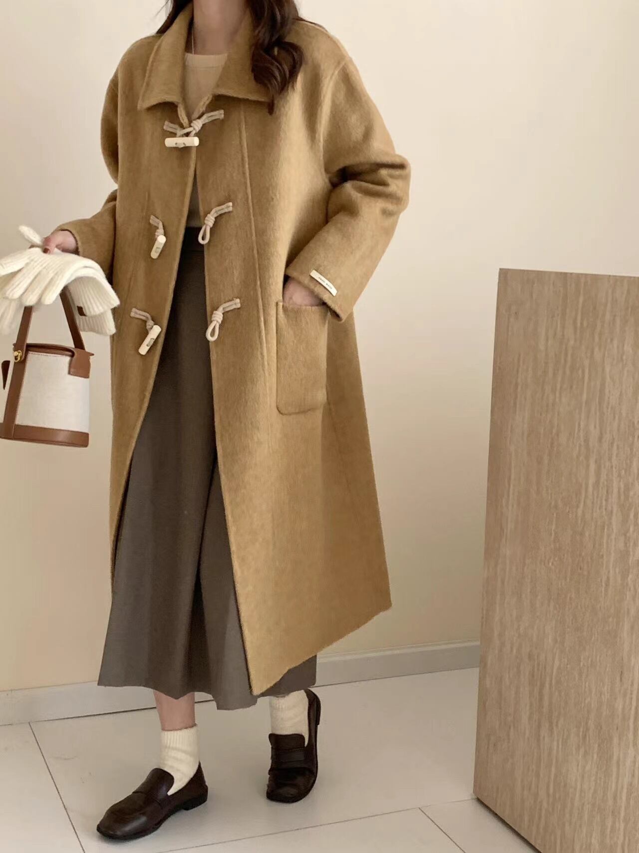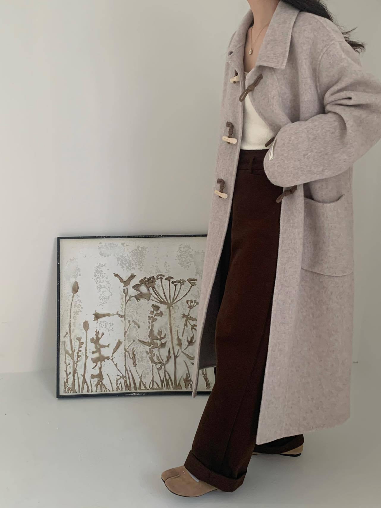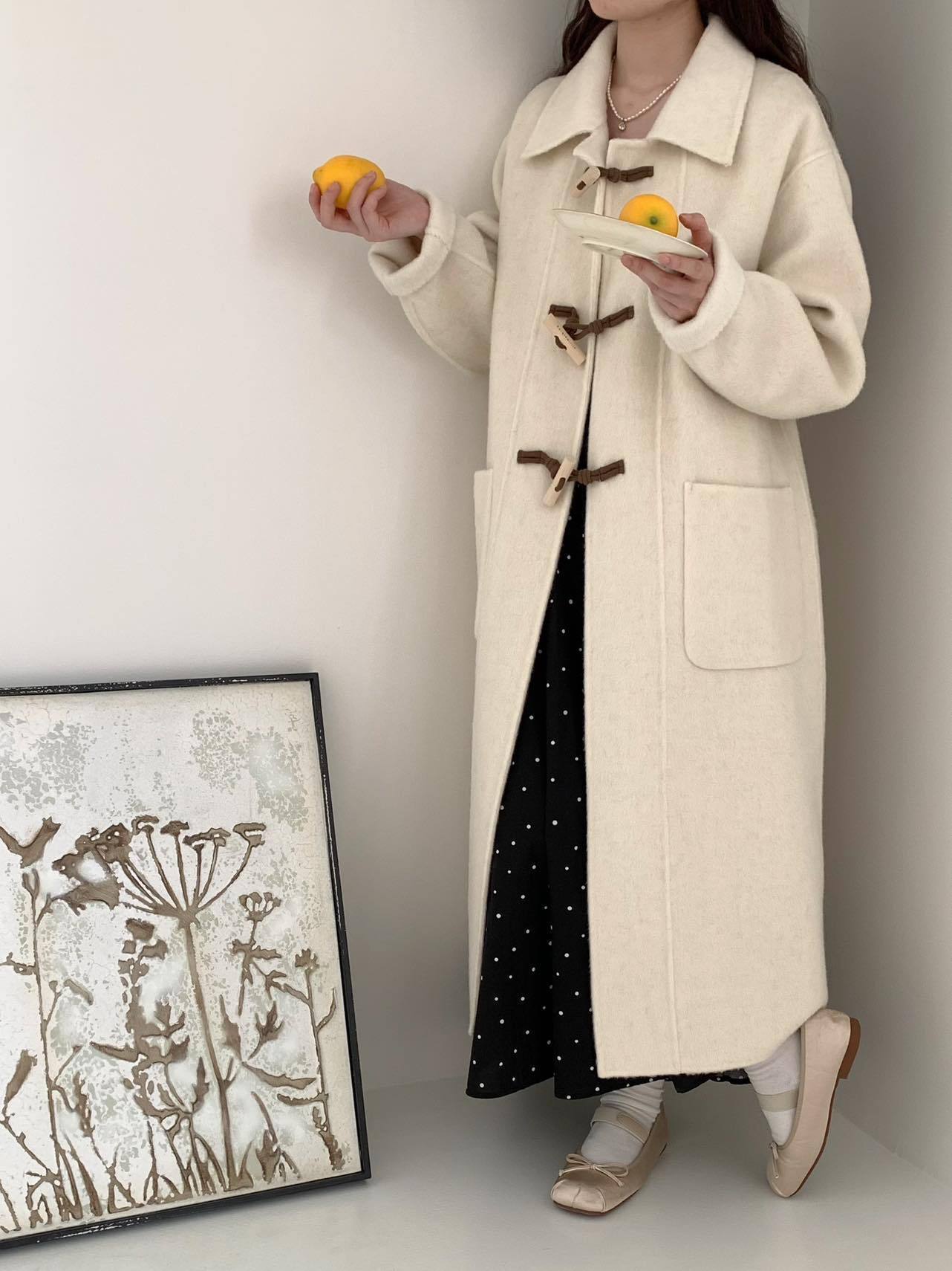 大人の可愛らしさいっぱいのロング丈のダッフルコート。