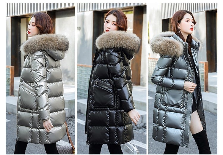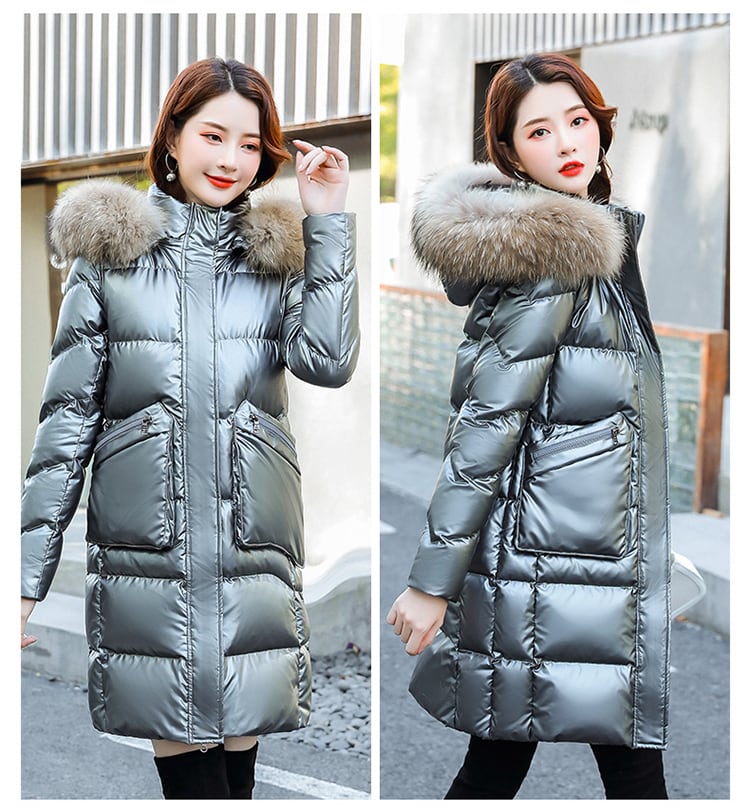 大人カジュアルなメタリックカラーのミドル丈ダウンジャケット。