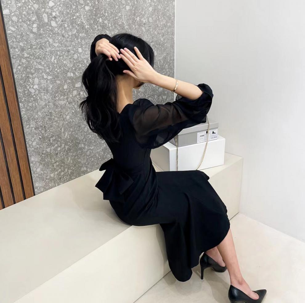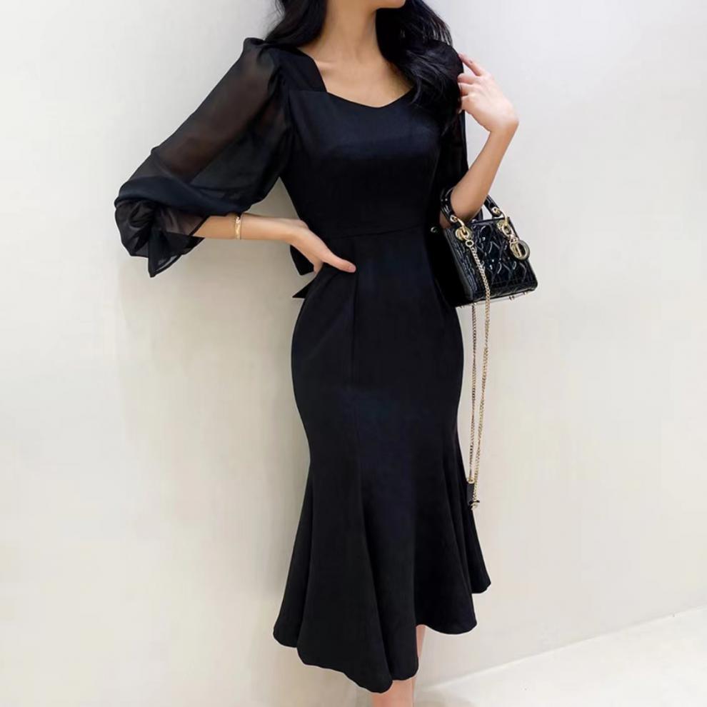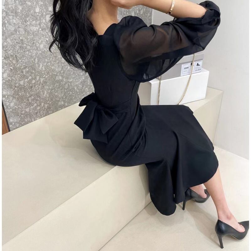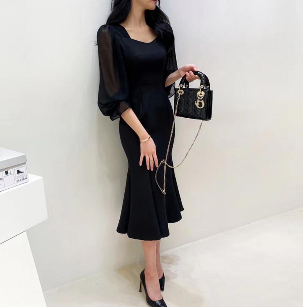 【パーティードレス】 パーティードレス かっこいい 結婚式 お呼ばれドレス 結婚式のお呼ばれ ワンピース シンプル ミモレ マーメイド ワンピース 20代 30代 40代 袖あり 体型カバー フォーマルドレス 結婚式フォーマル お呼ばれ 二次会 フォーマルワンピース おしゃれ ブラック 黒 ホワイト 白
