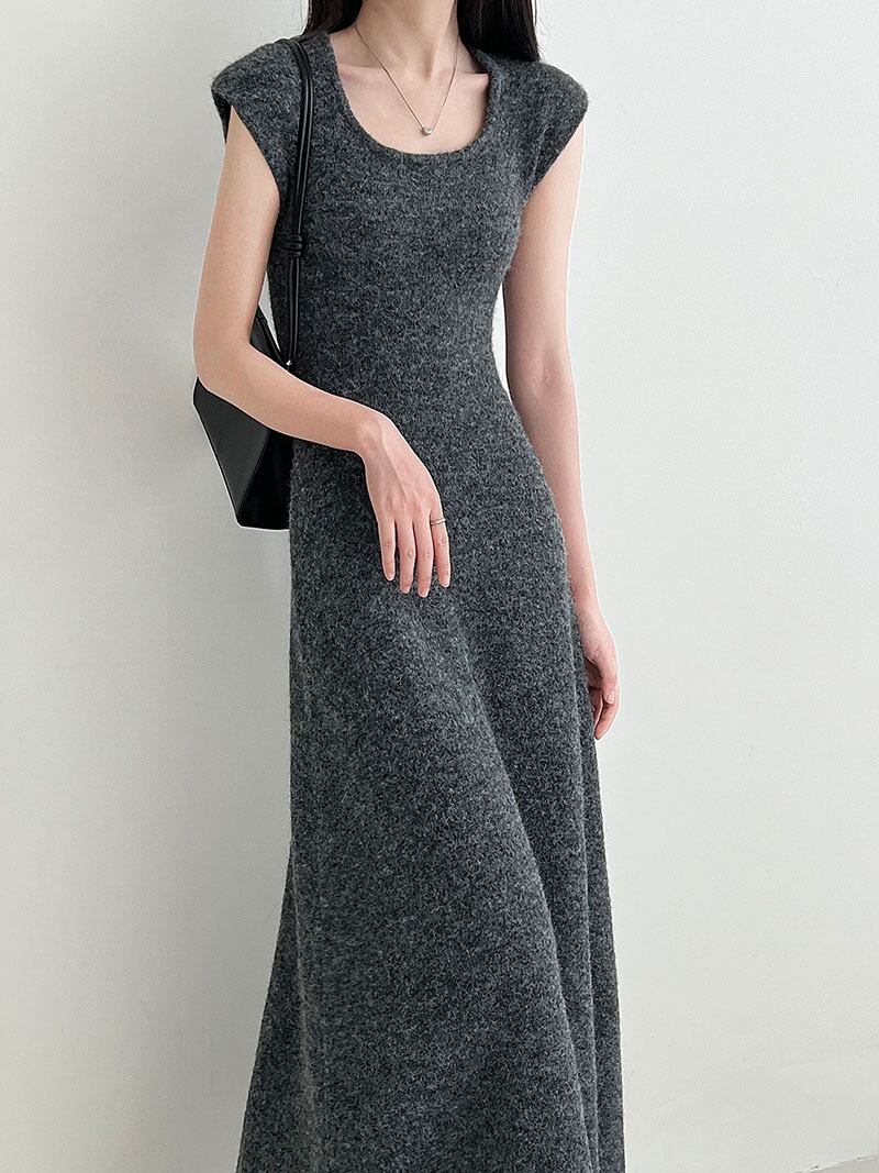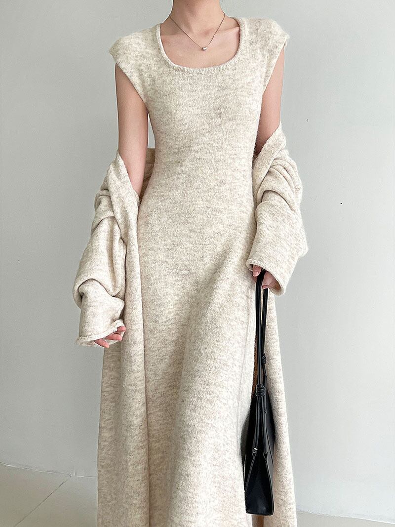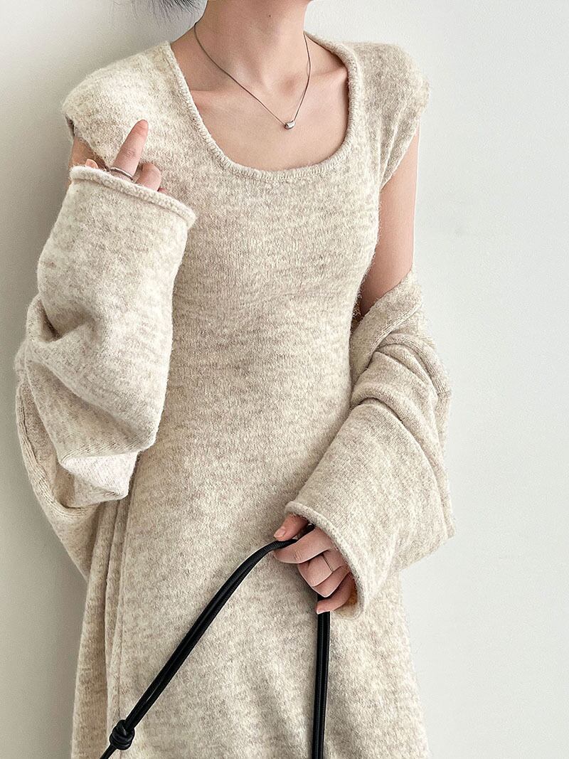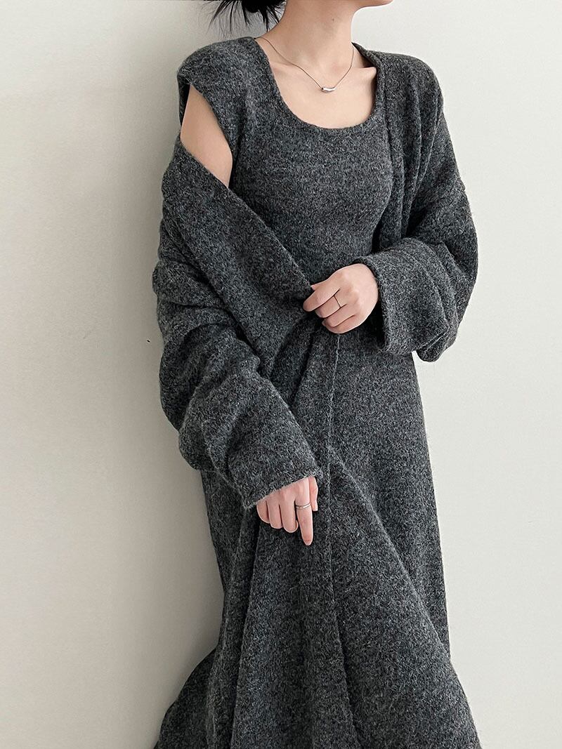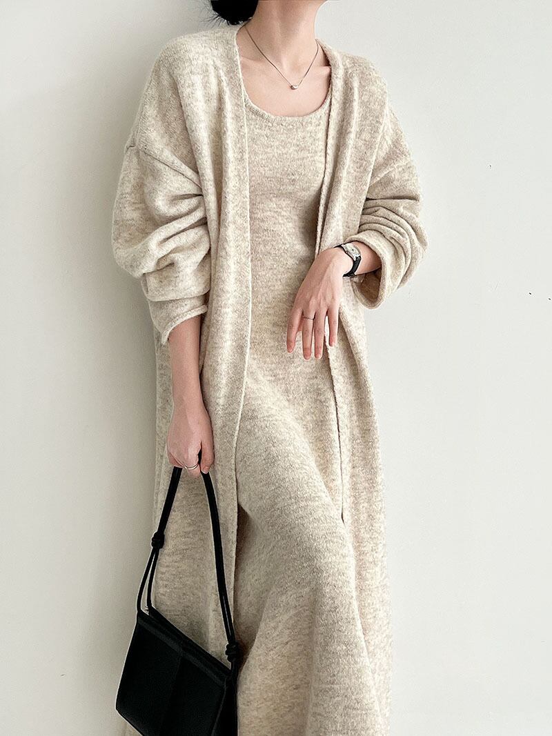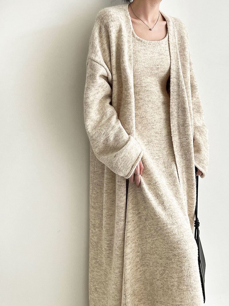 大人エレガントなニットワンピース+コーディガンのセットアップ。