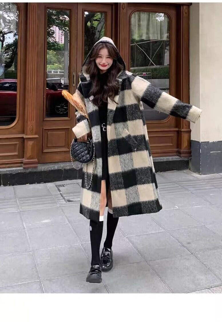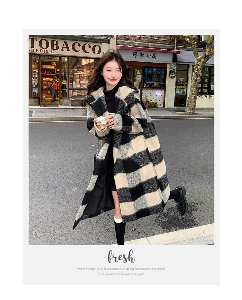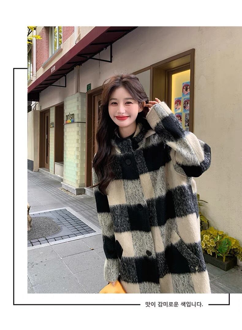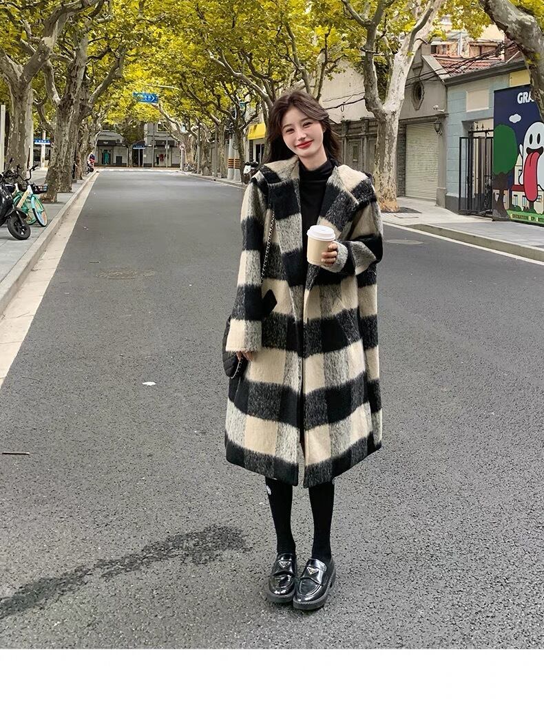 大人可愛いレトロなブロックチェックのチェスターコート。