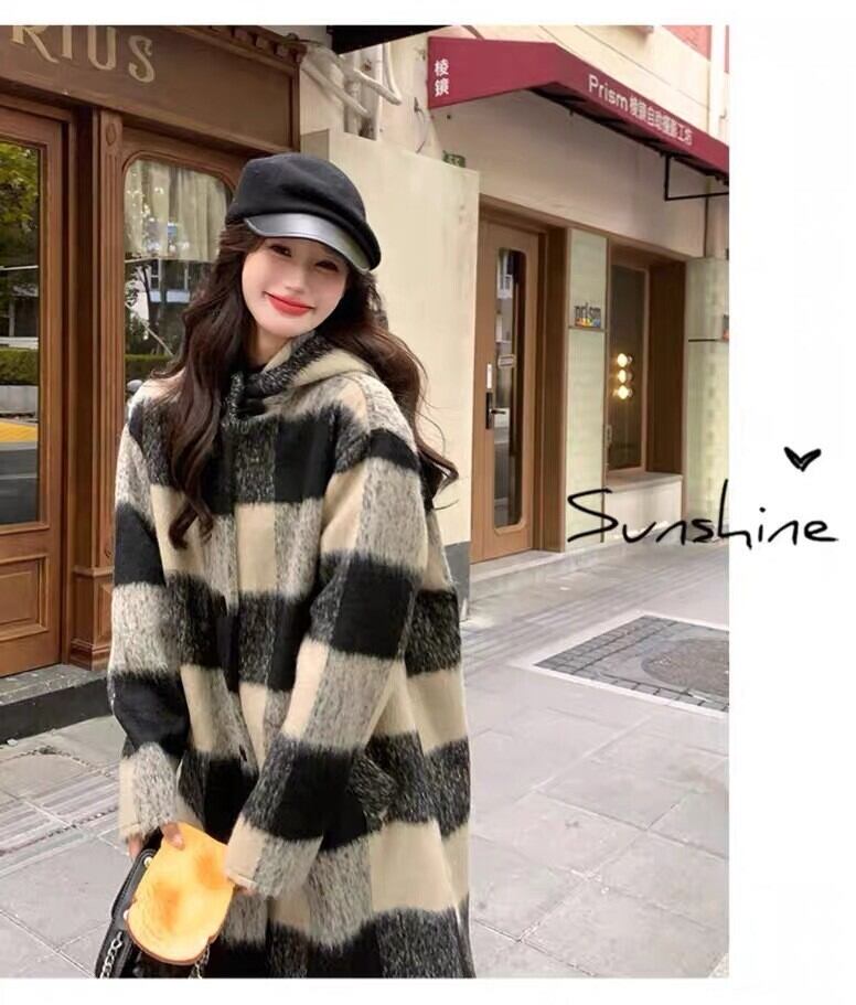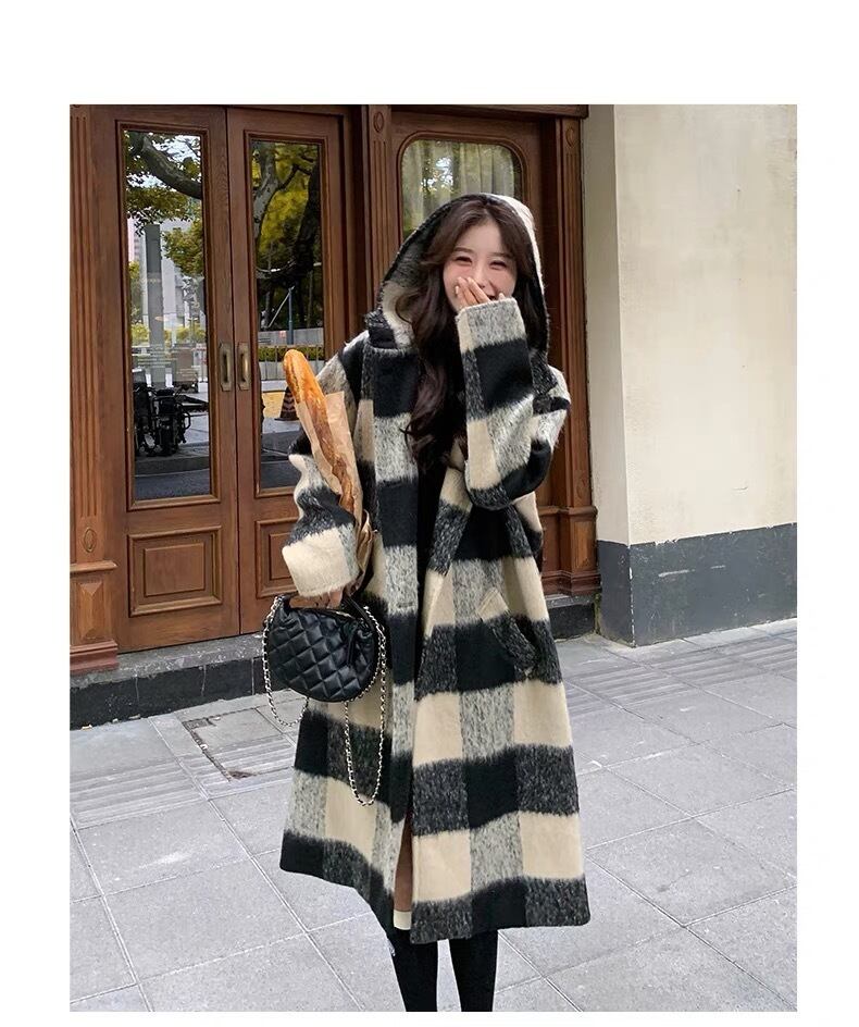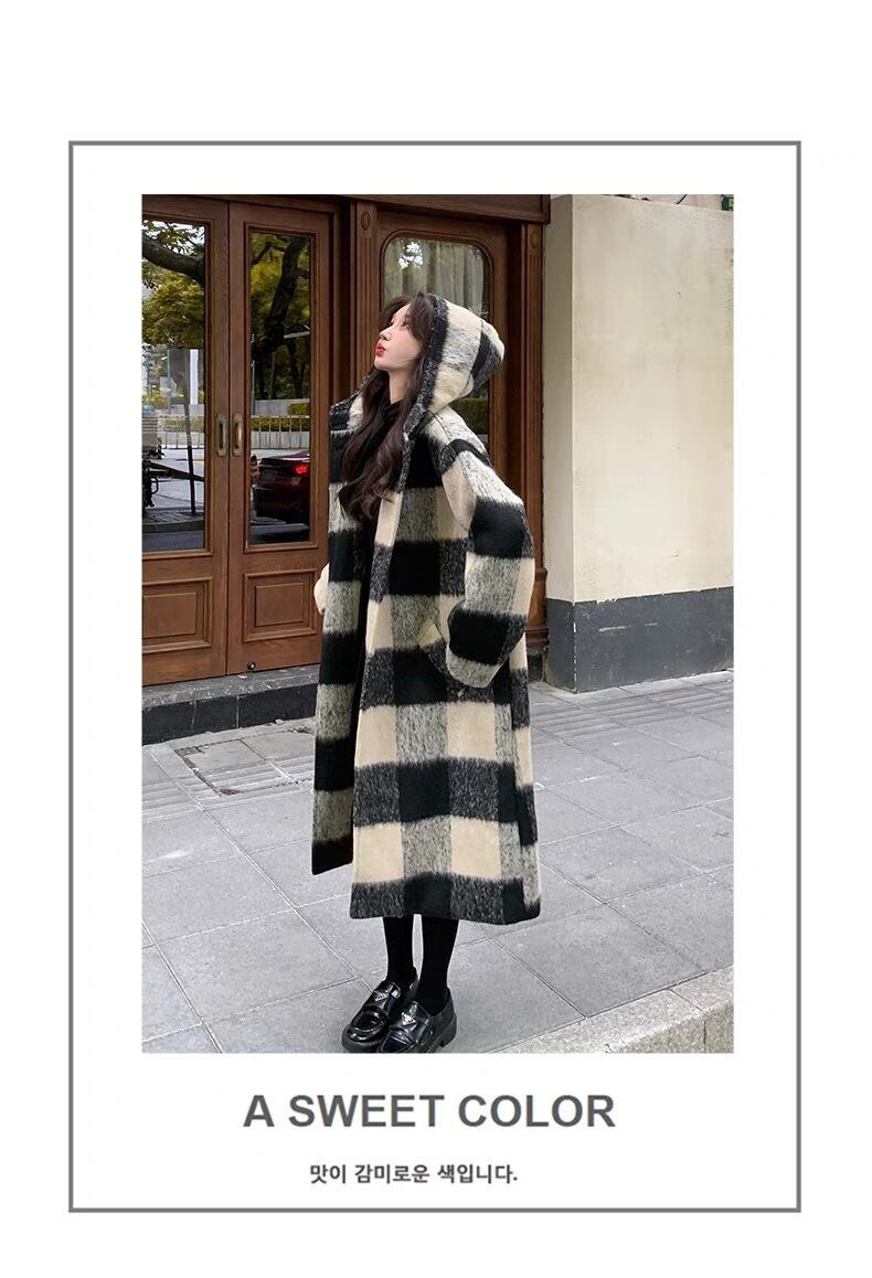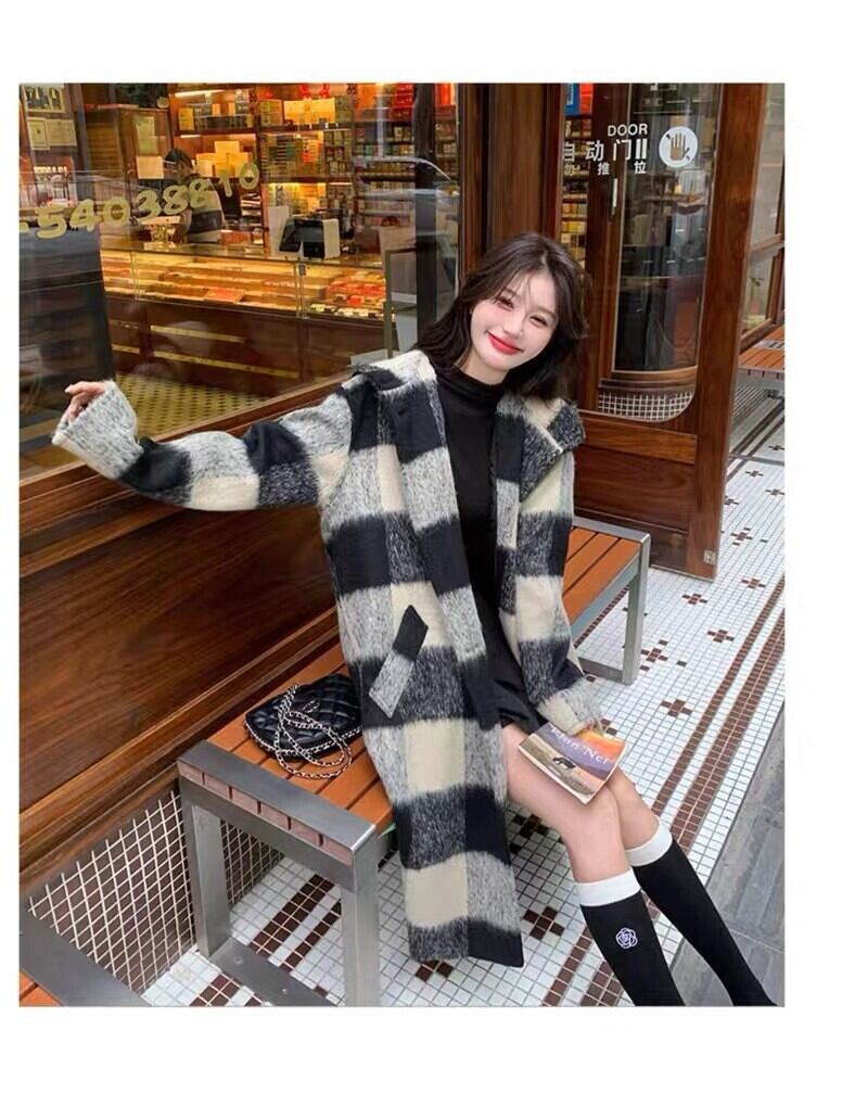 大人可愛いレトロなブロックチェックのチェスターコート。
