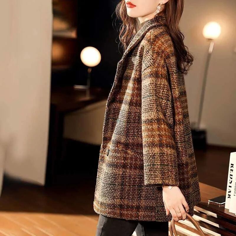 大人エレガントでシンプルなチェック柄のジャケットコート。
