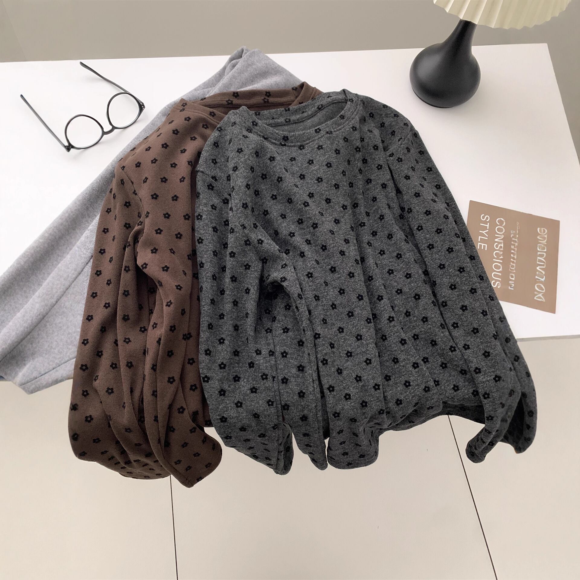 【カットソー】 カットソー レディース カットソー 春 秋 冬 20代 30代 40代 長袖 レディース カットソー tシャツ カットソー トップス 大人 可愛い きれいめ 花柄 ダークグレー ブラウン 茶色