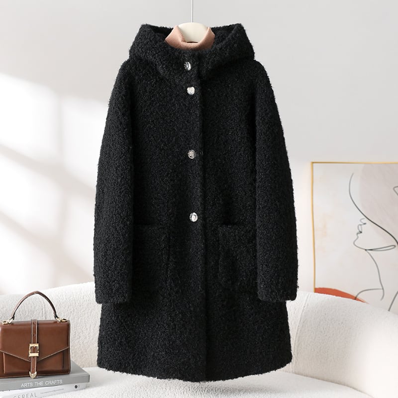 お首まわりまであったか大人可愛いフード付きのボアコート。