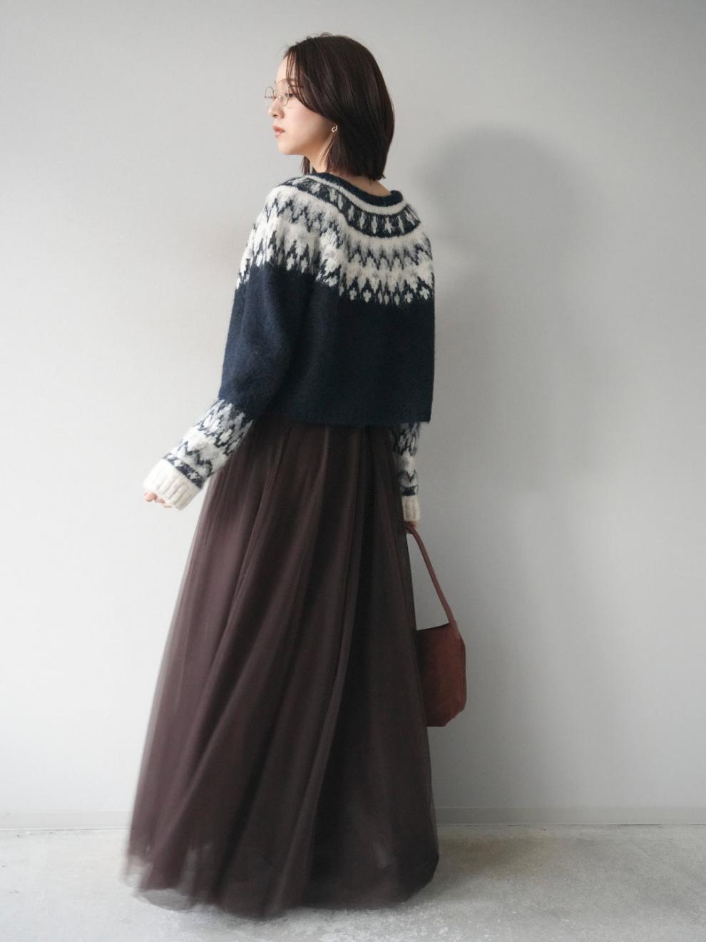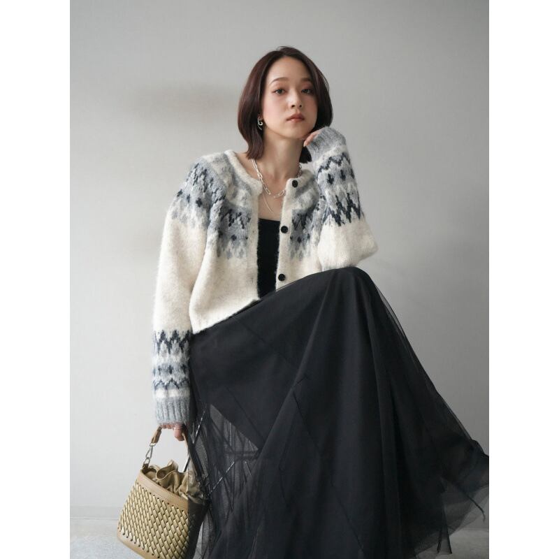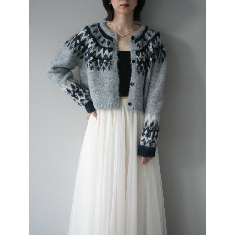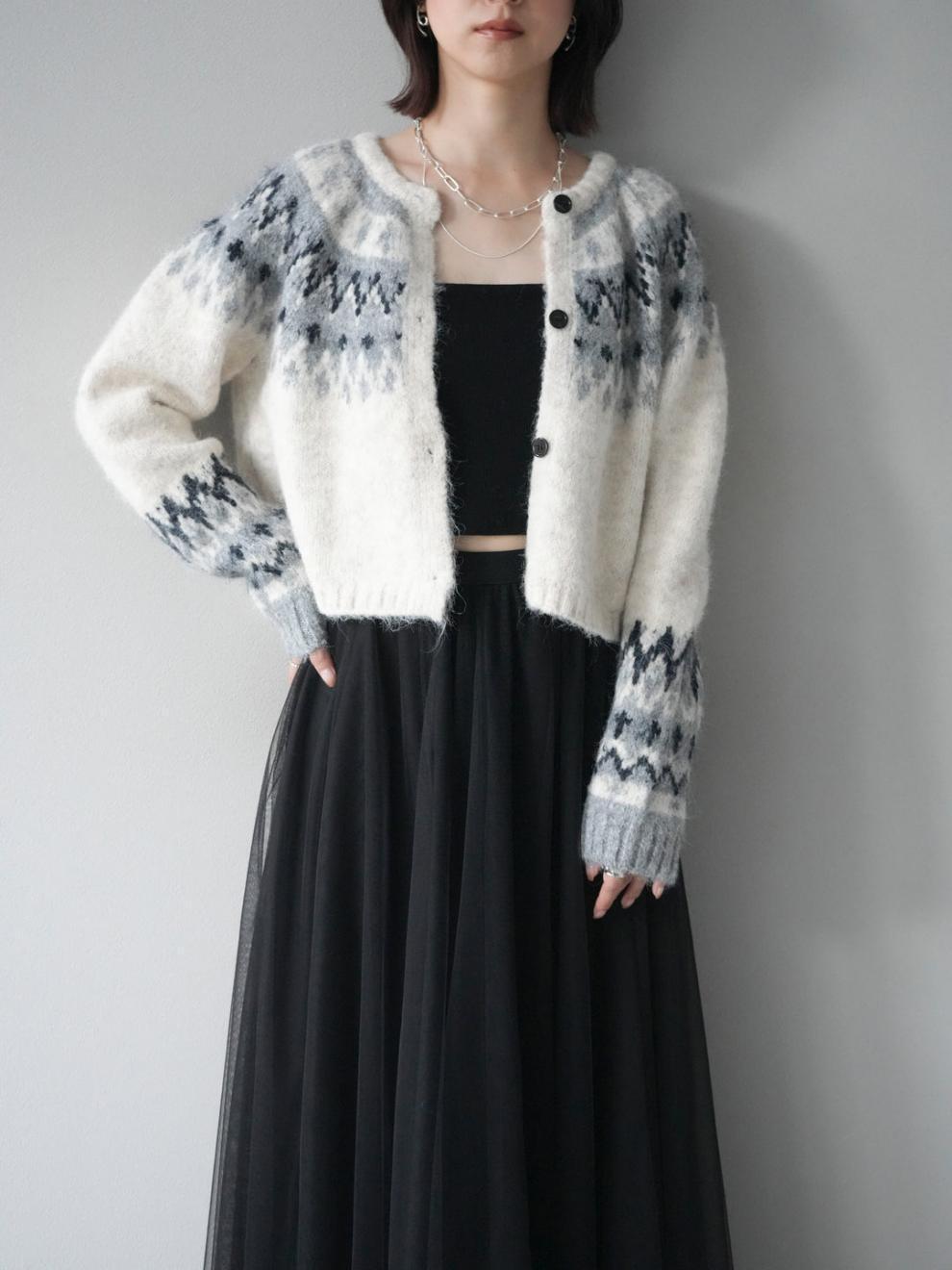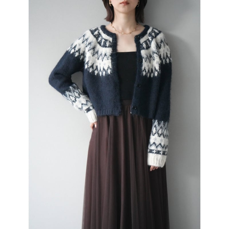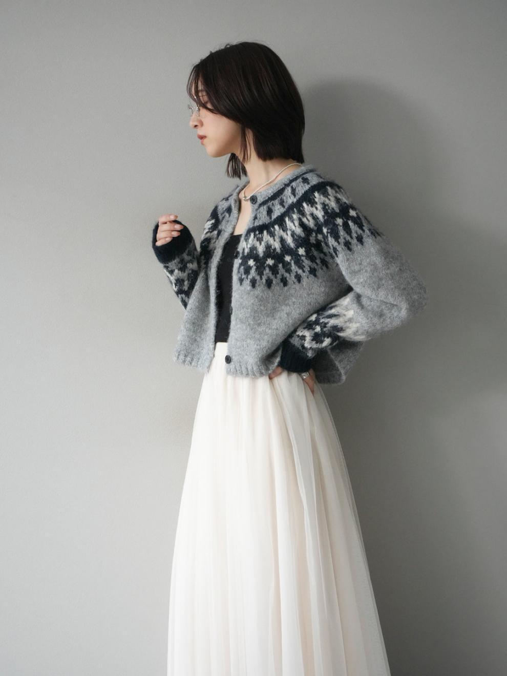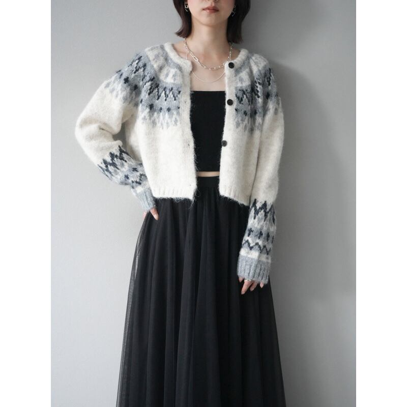 コンパクトなサイズ感のノルディック柄のカーディガン。