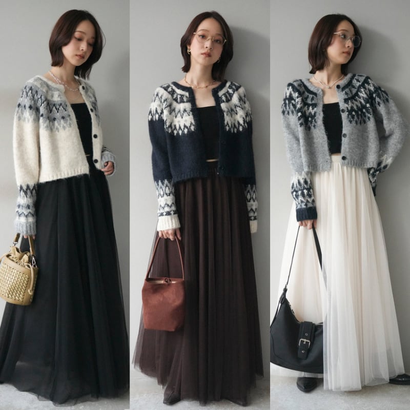 【カーディガン】 カーディガン レディース おしゃれ 韓国 春 秋 冬 20代 30代 40代 ニット カーディガン 長袖 トップス ノルディック ホワイト 白 グレー ブラック 黒