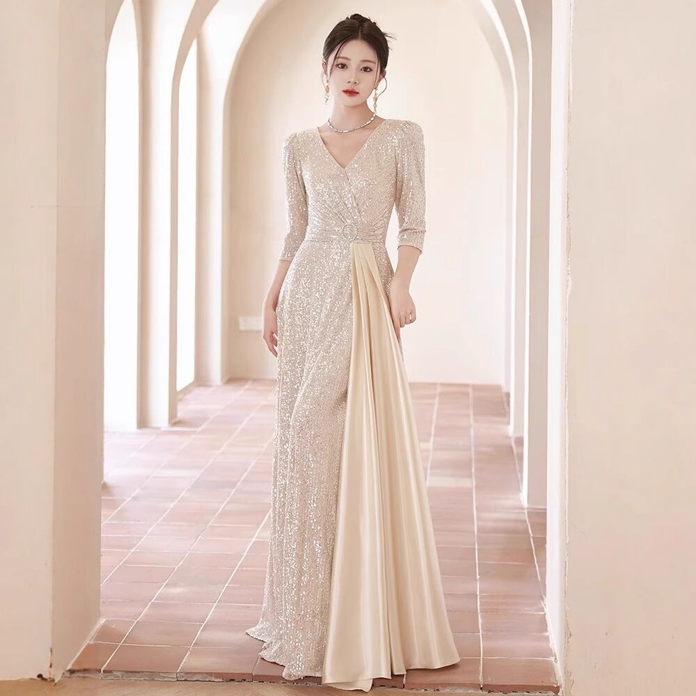 【パーティードレス】 大きいサイズ パーティードレス かっこいい 結婚式 お呼ばれドレス 結婚式のお呼ばれ ワンピース シンプル ロング ワンピース 20代 30代 40代 袖あり 体型カバー フォーマルドレス 結婚式フォーマル お呼ばれ 二次会 フォーマルワンピース おしゃれ シャンパン ブラック 黒 S M L XL 2XL 3XL