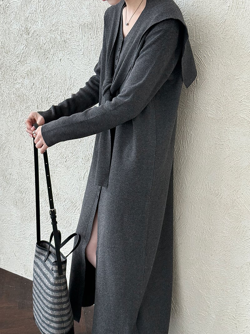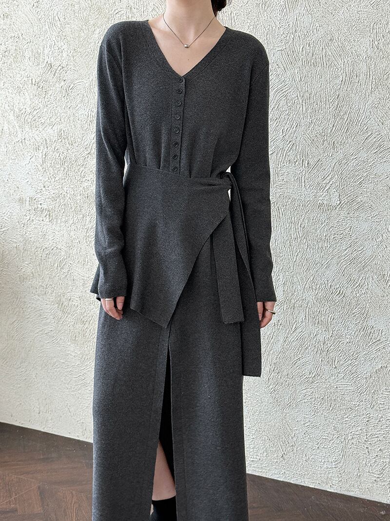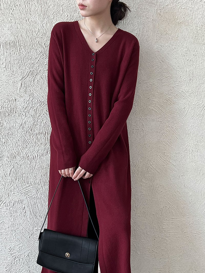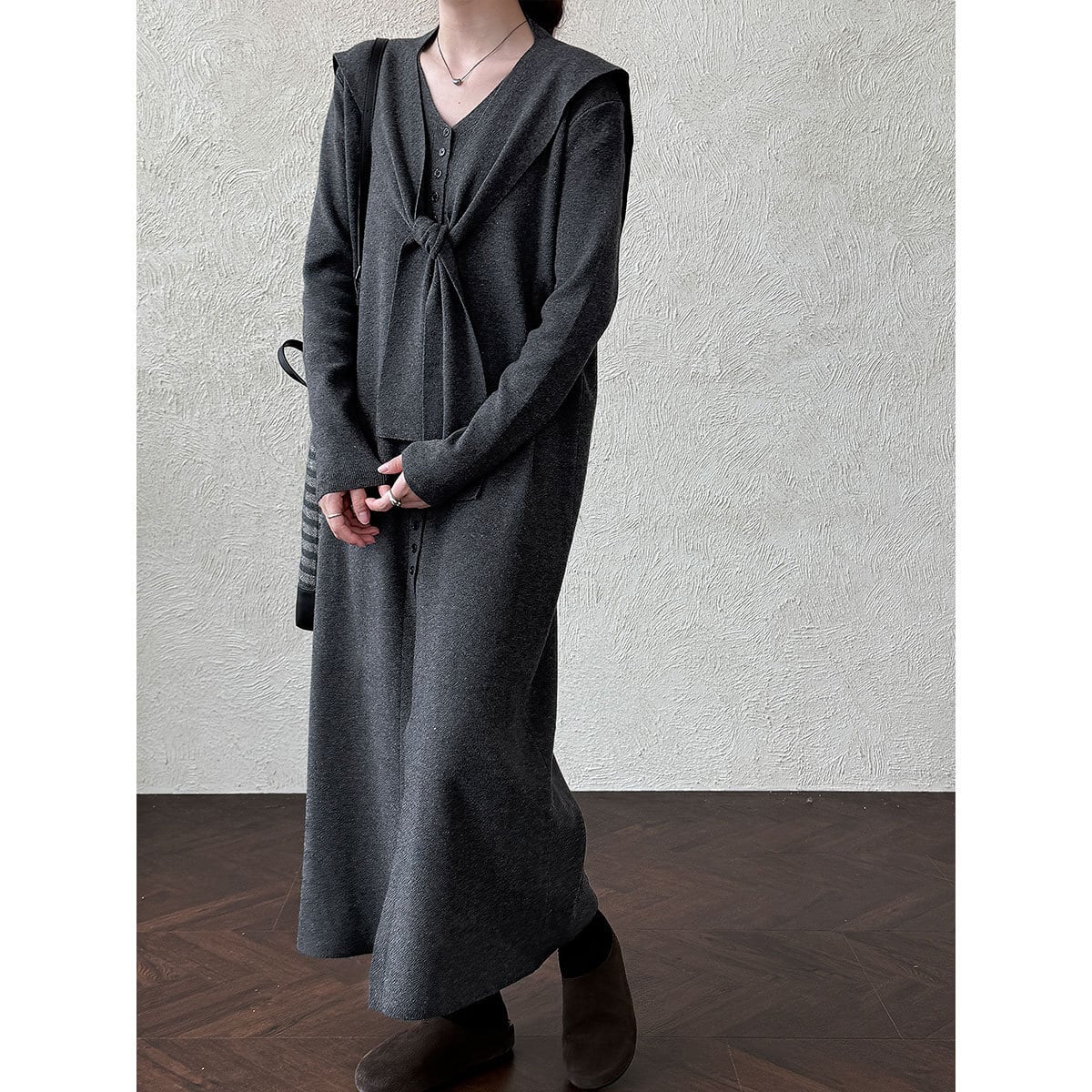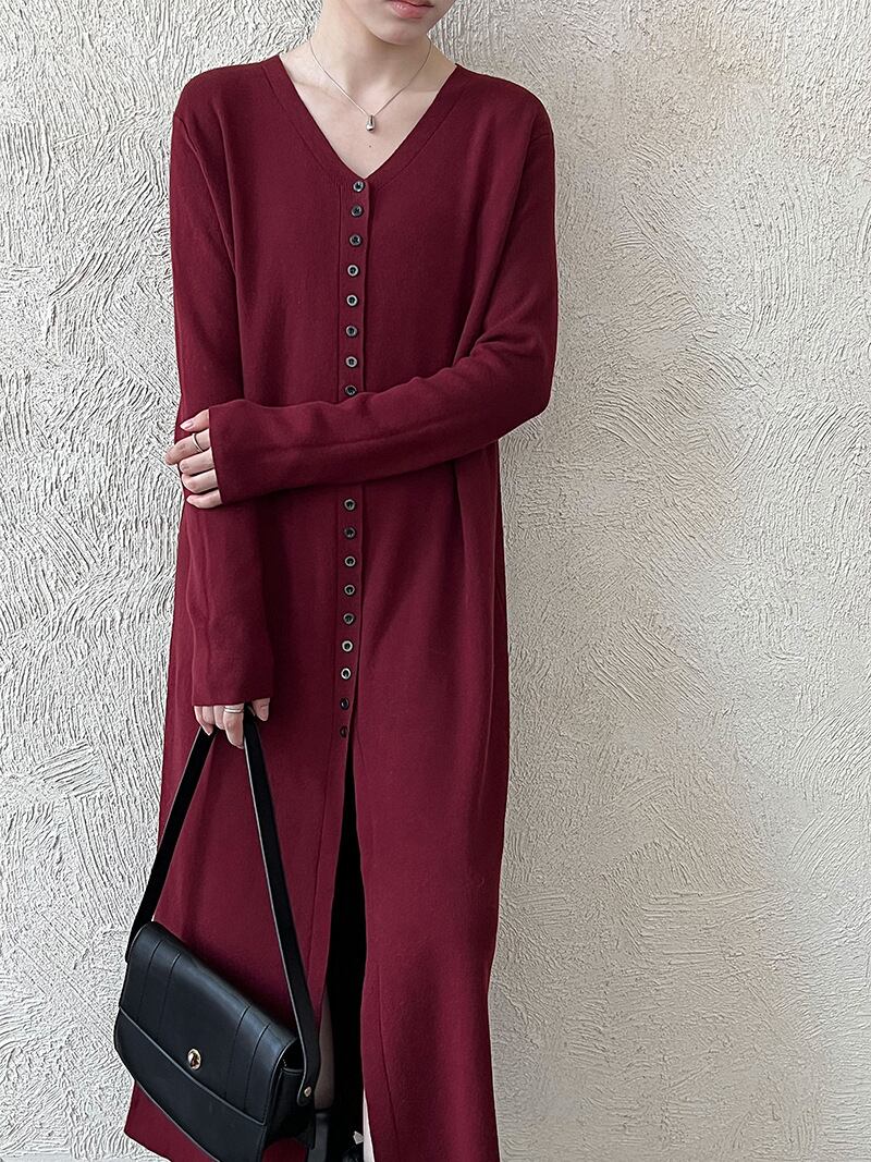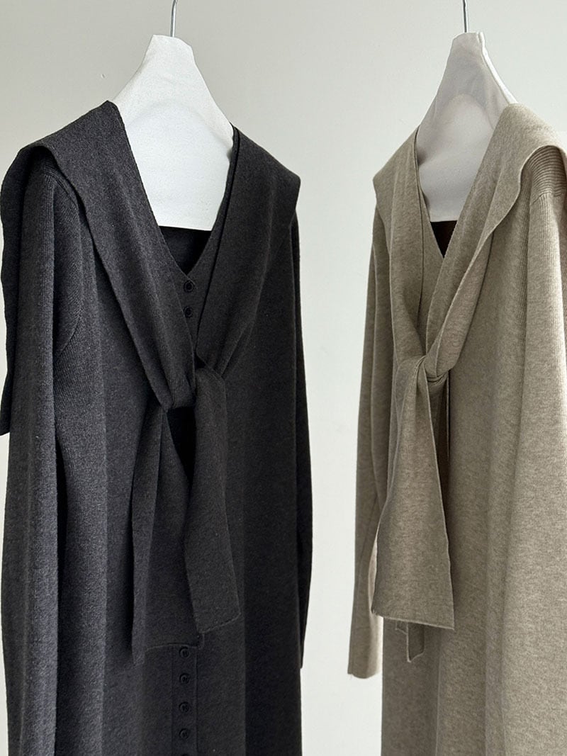 大人エレガントなニットワンピース+カーディガンのセットアップ。