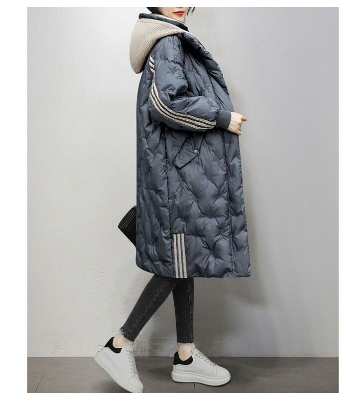 大人カジュアルなメタリックカラーのミドル丈ダウンジャケット。
