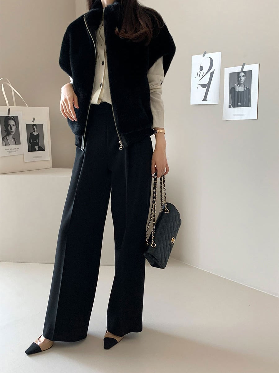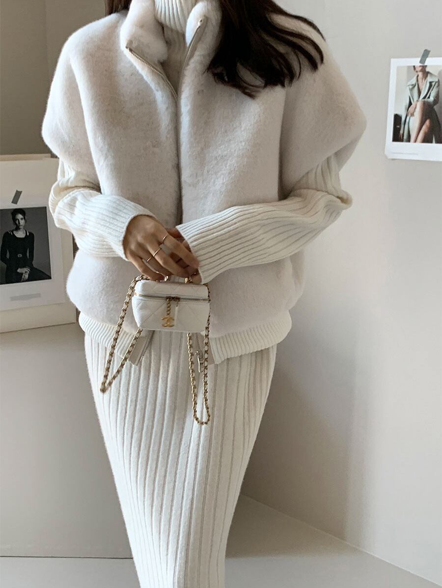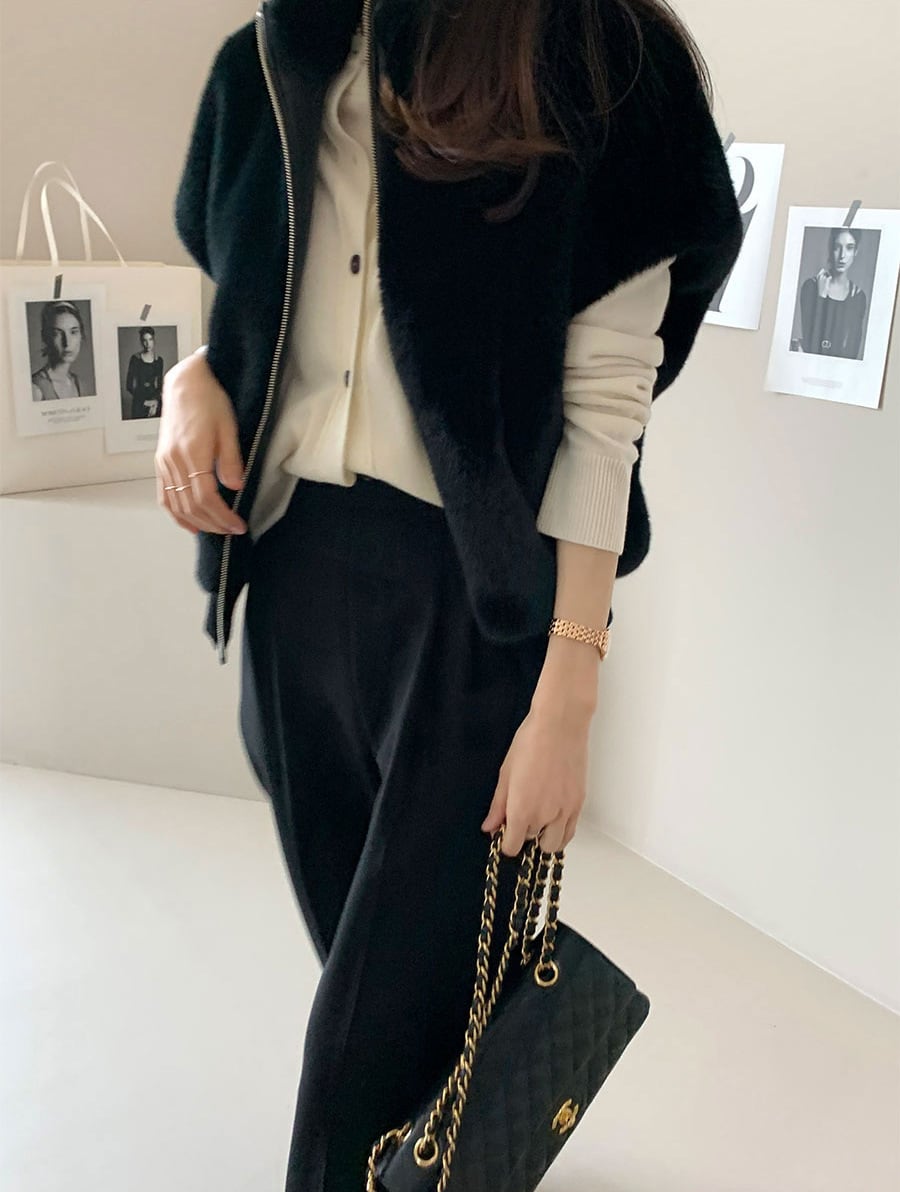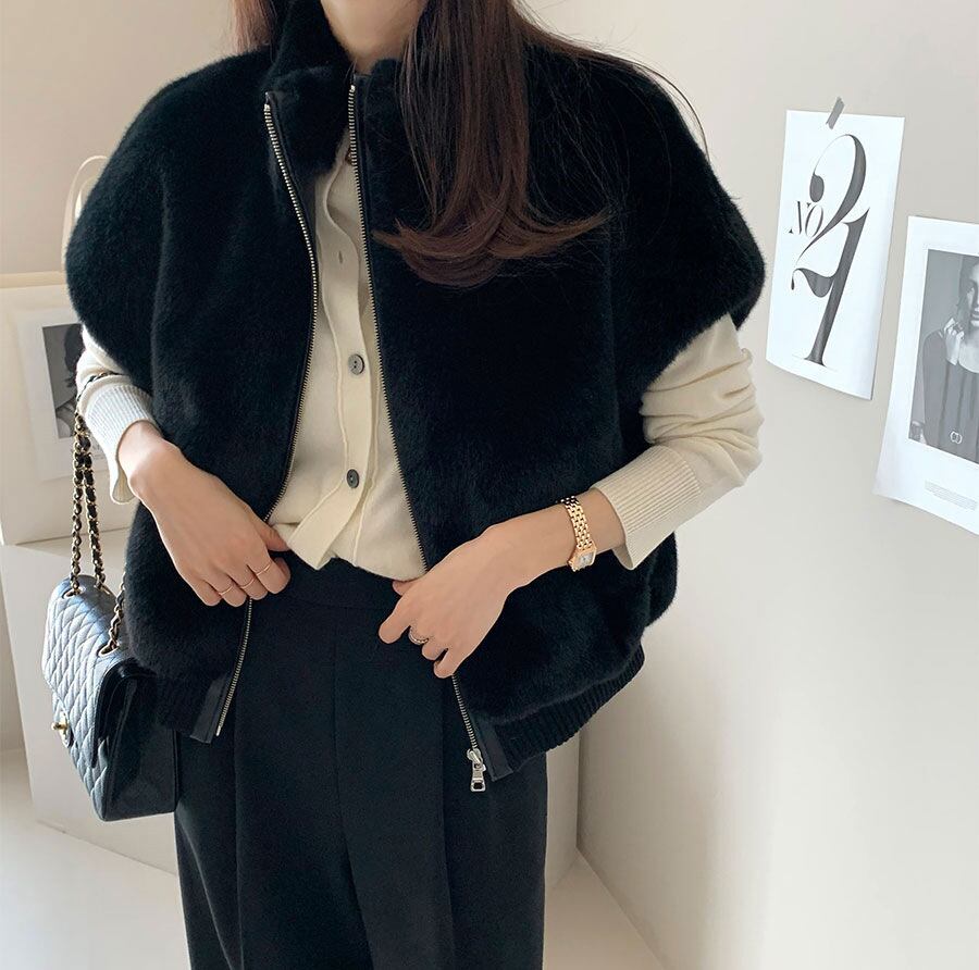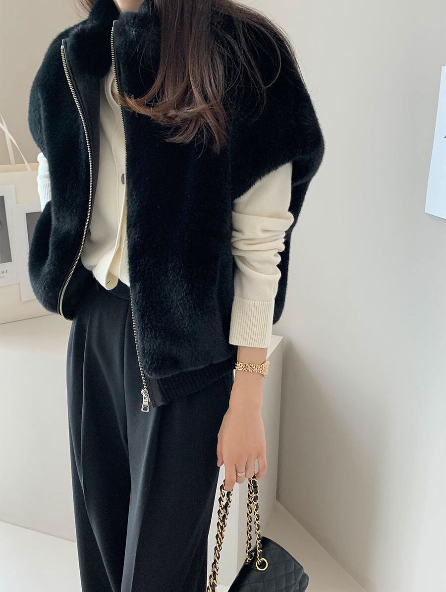 もこもこファーがあたたかく大人可愛いファーベスト。