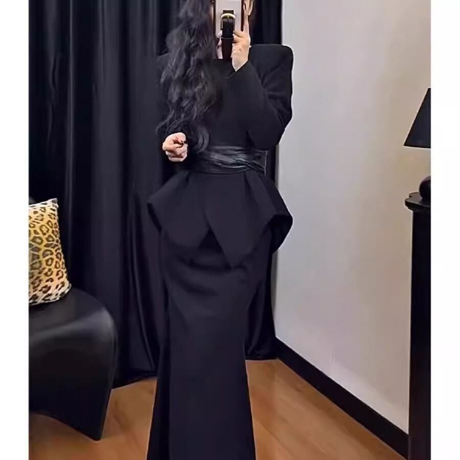 【パーティードレス】 パーティードレス かっこいい 結婚式 マーメイド お呼ばれドレス 結婚式のお呼ばれ ワンピース シンプル ロング ワンピース 20代 30代 40代 成人式 同窓会 袖あり 体型カバー フォーマルドレス 結婚式フォーマル お呼ばれ 二次会 フォーマルワンピース おしゃれ ブラック 黒 S M L XL