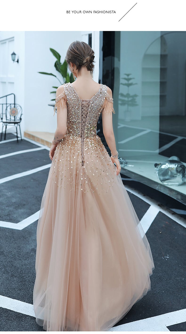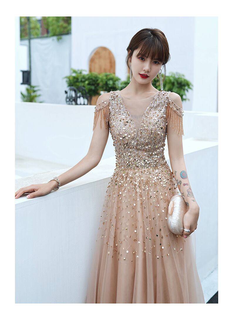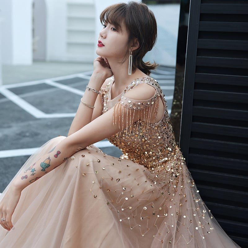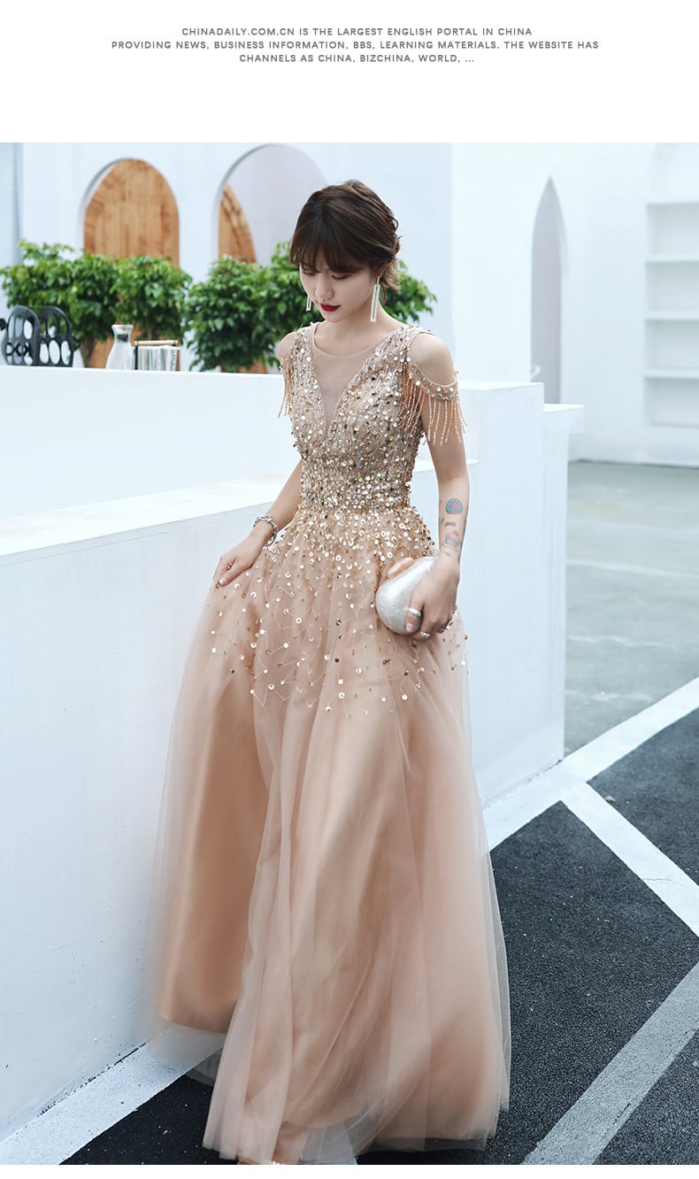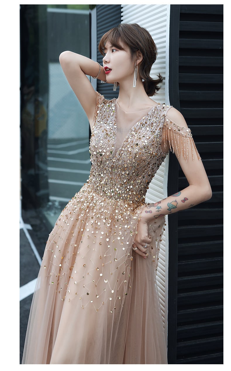 バスト~ウエストにかけてのスパンコールがきらびやかでドレッシー。