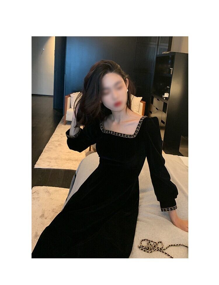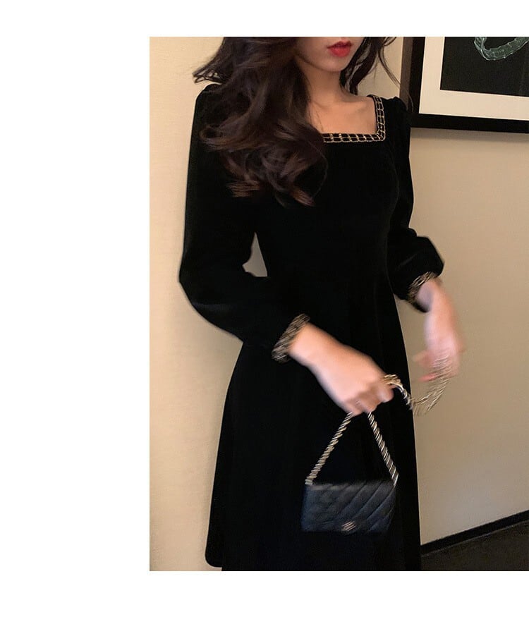 スクエアネックでデコルテラインを美しく華奢に見せる。