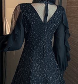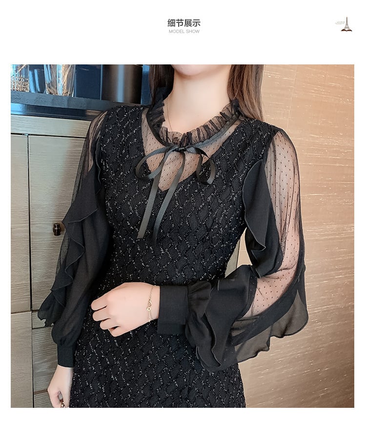 両サイドの深いvネックとシースルーのお袖がちょっぴりセクシーに。