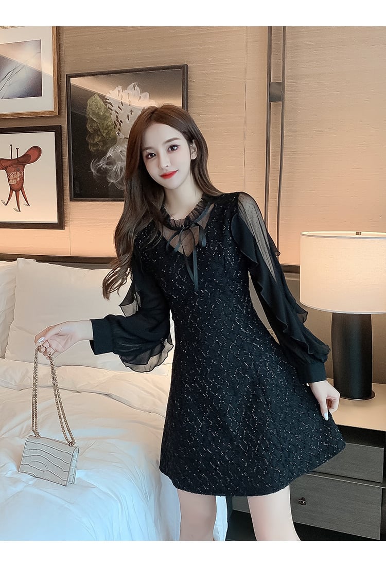 スパンコール使いが大人可愛いミニ丈のパーティードレス。