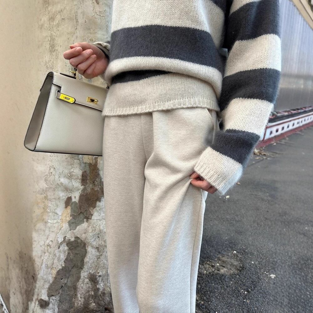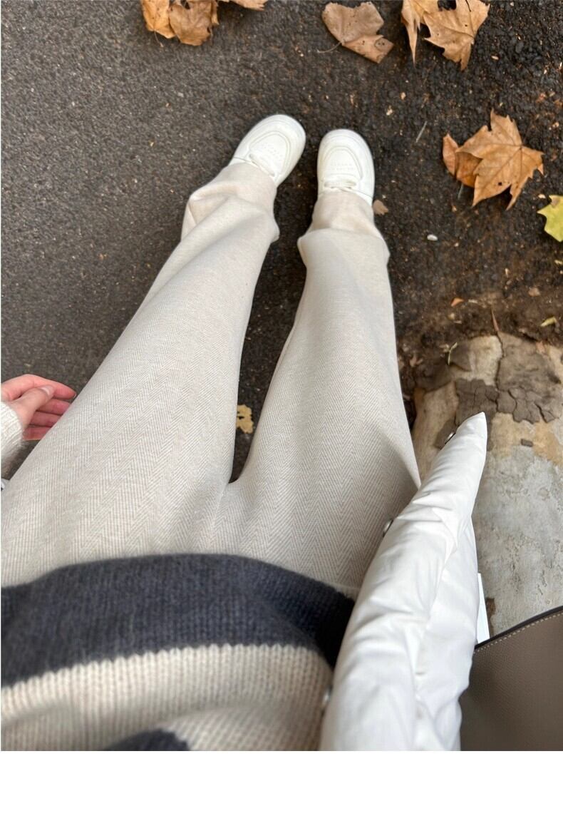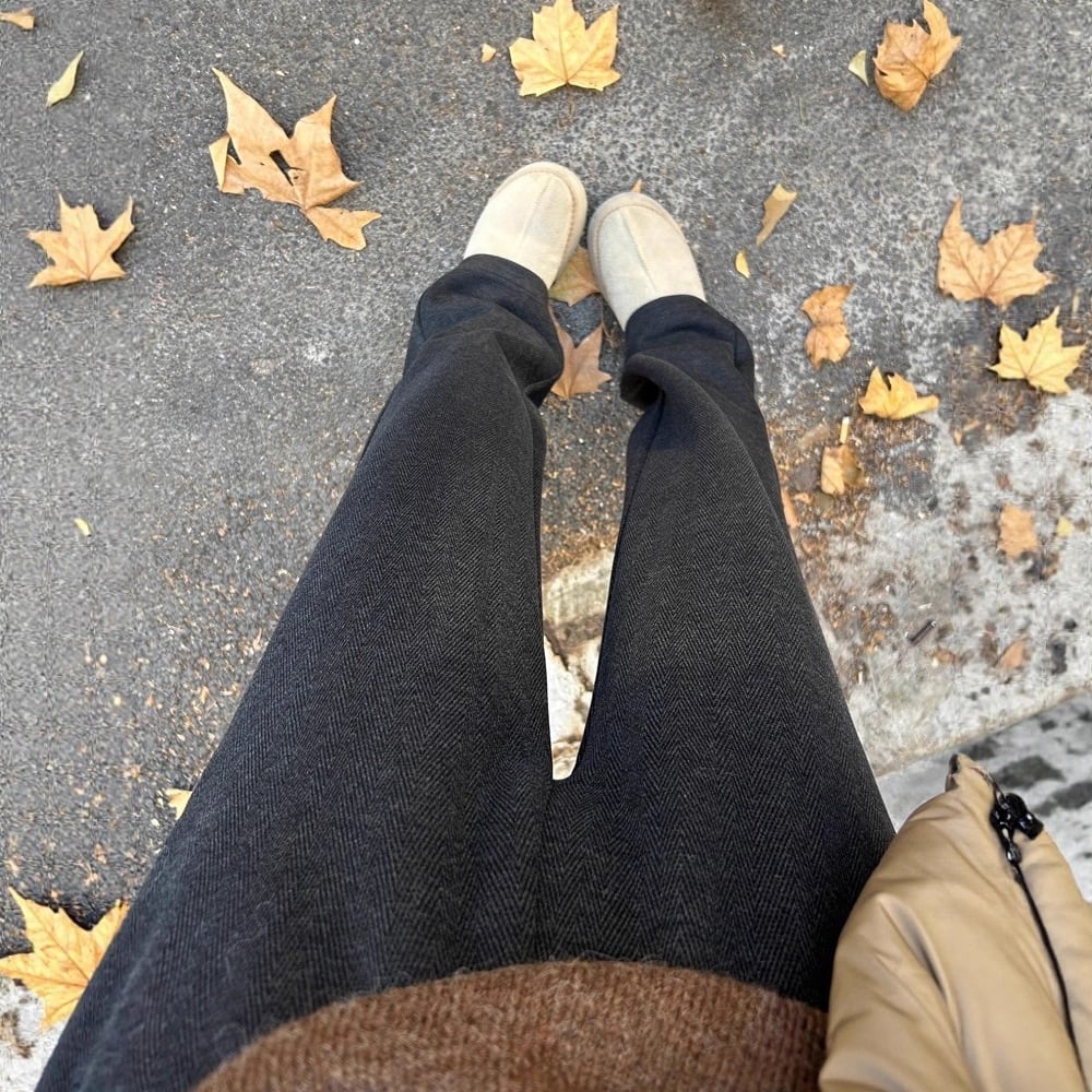 大人カジュアルなヘリンボーンのハイウエストパンツ。