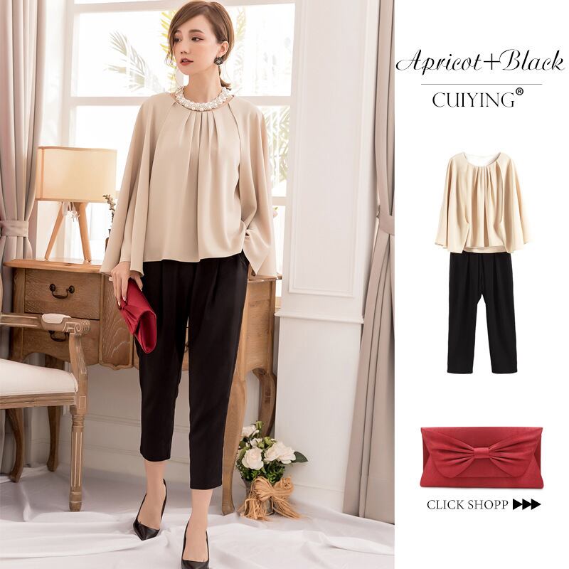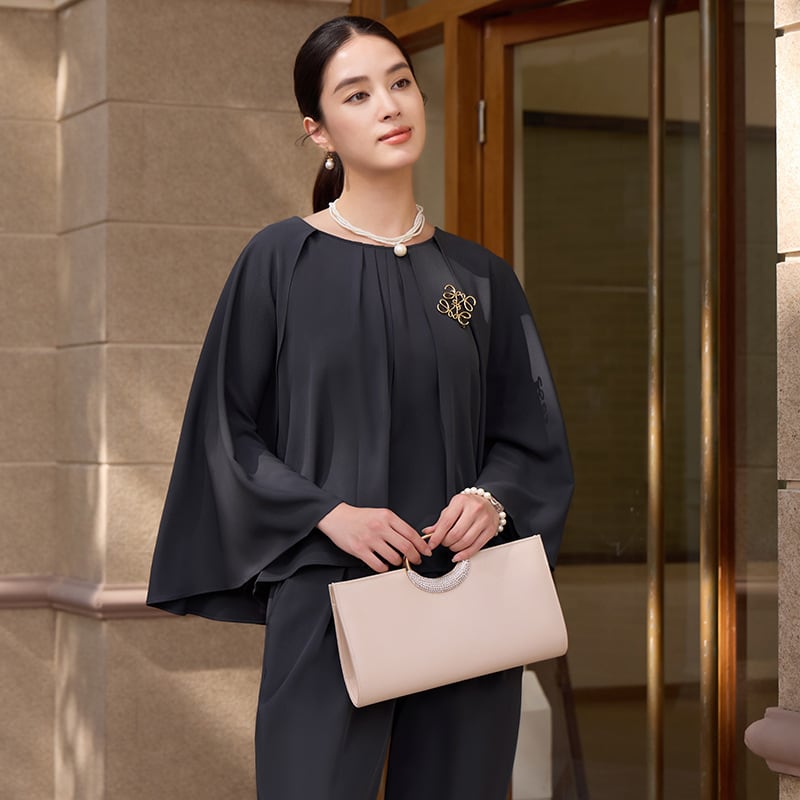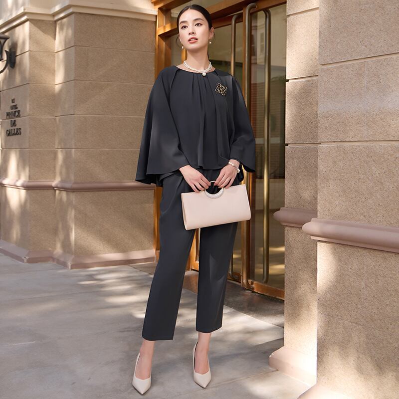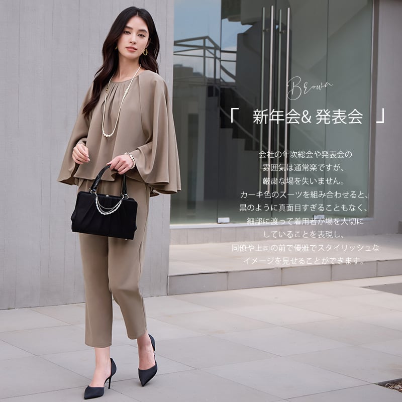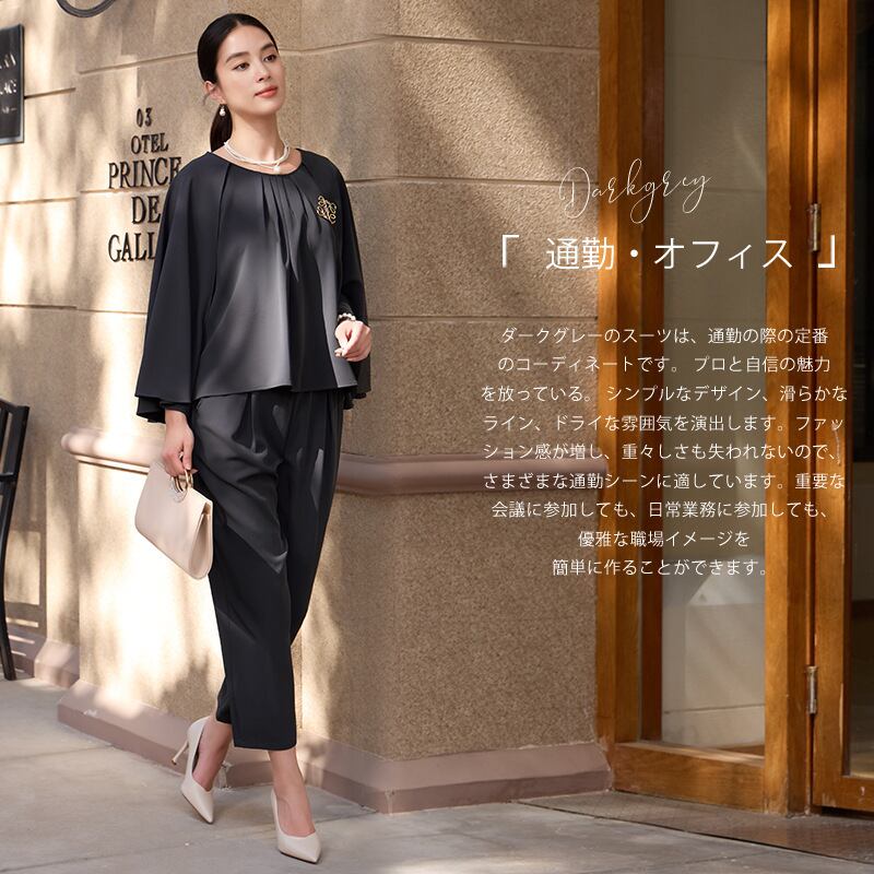 大人エレガントなセットアップタイプのパンツドレス。