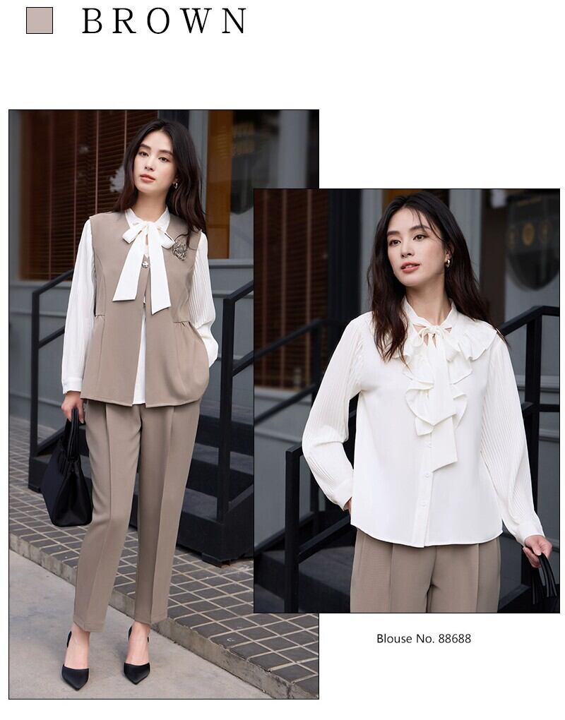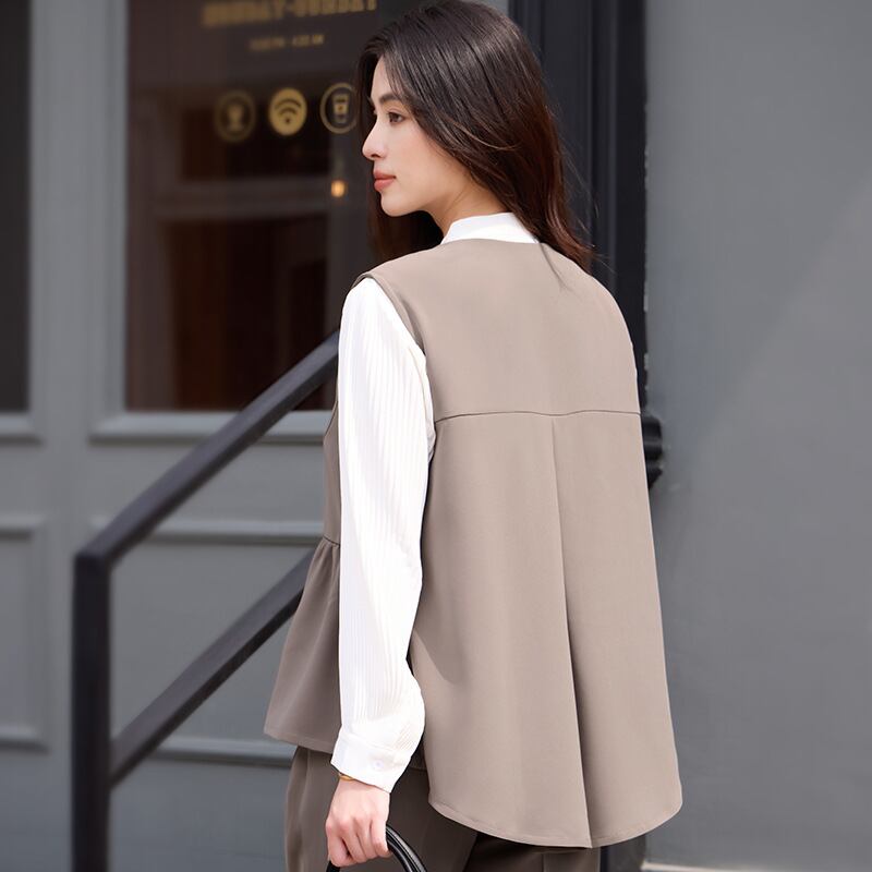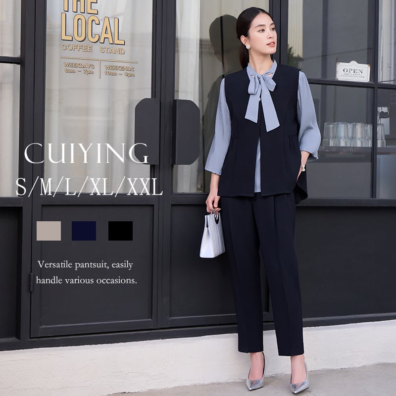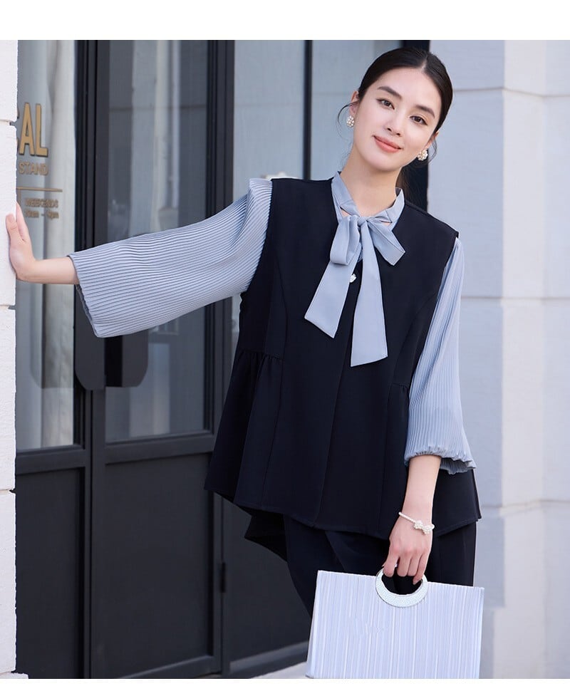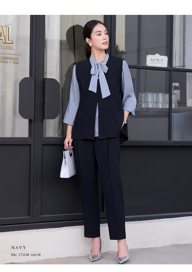 大人エレガントなジレ+パンツのセットアップドレス。
