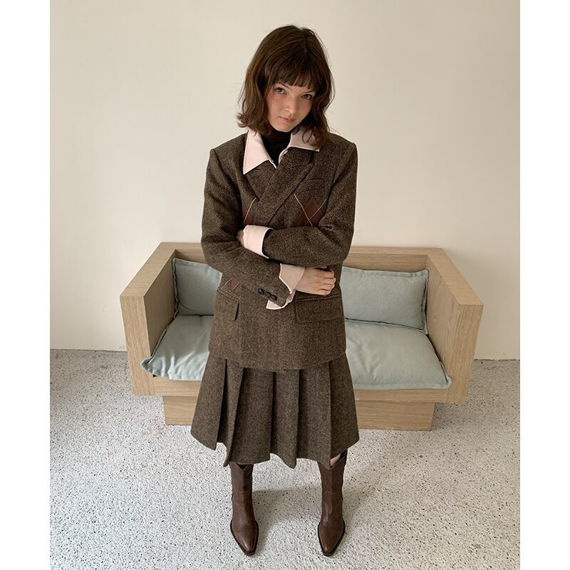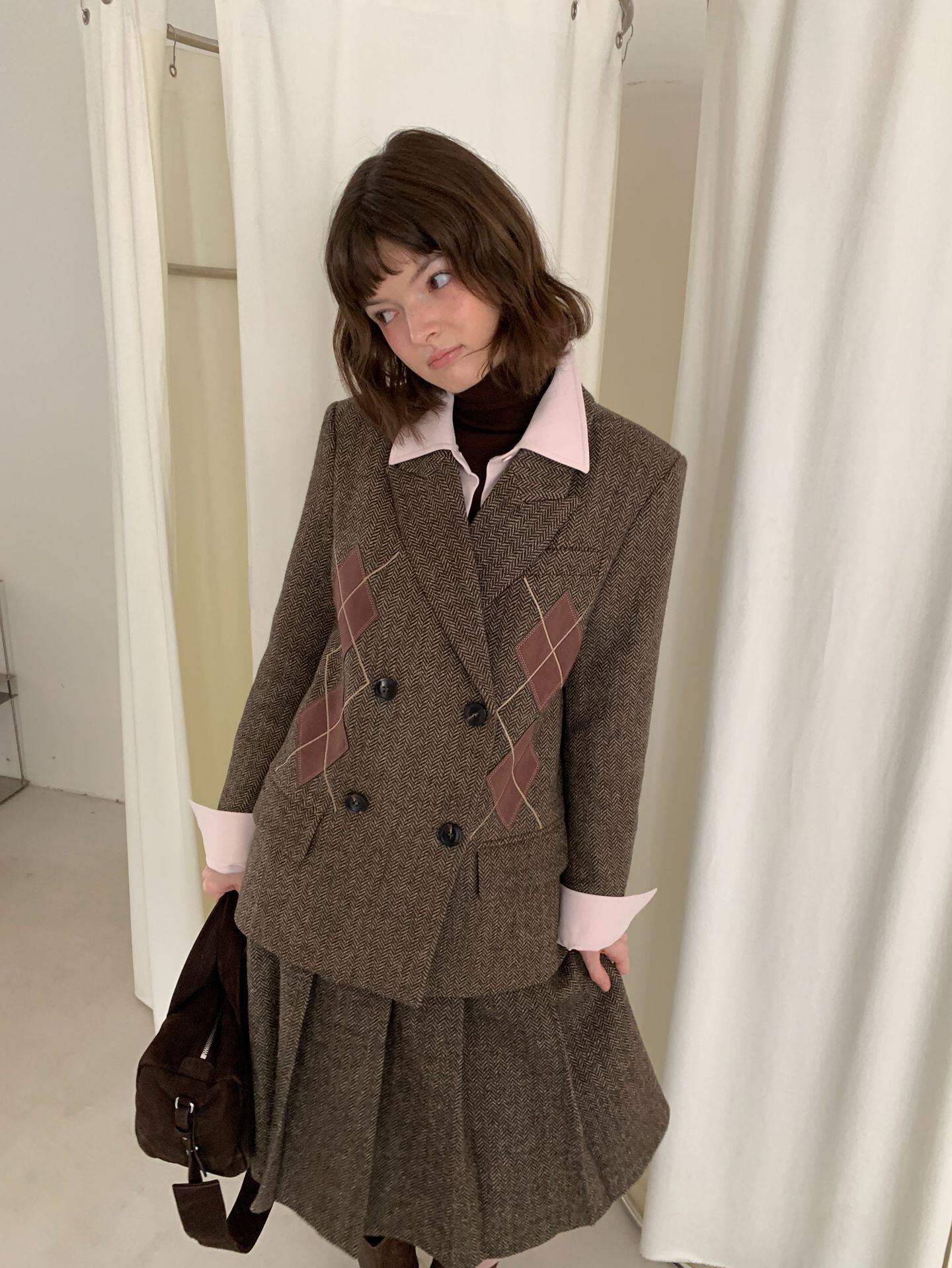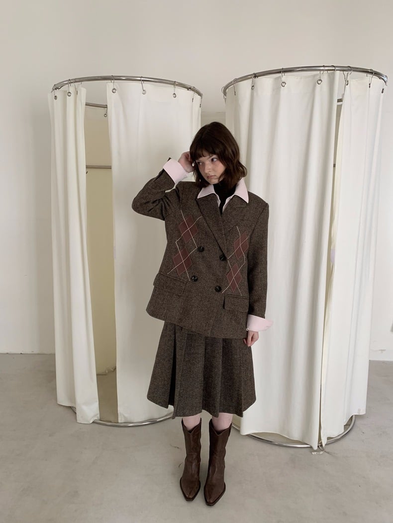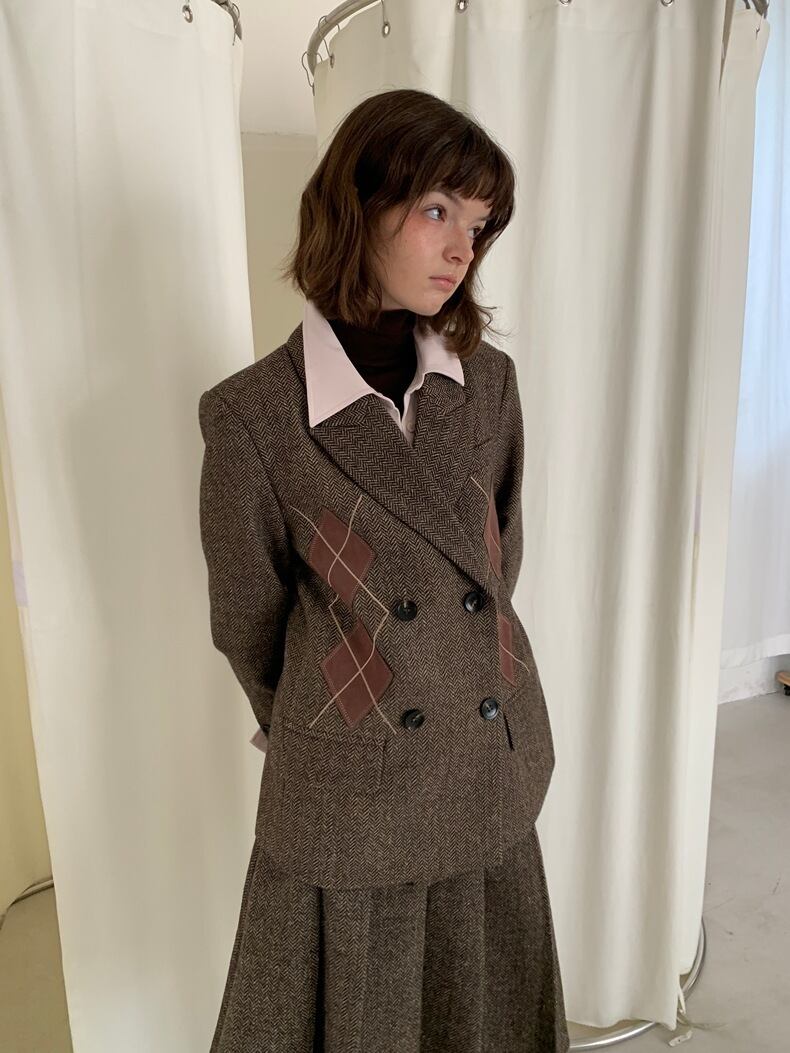 大人可愛いヘリンボーンのダイヤ柄テーラードジャケット。