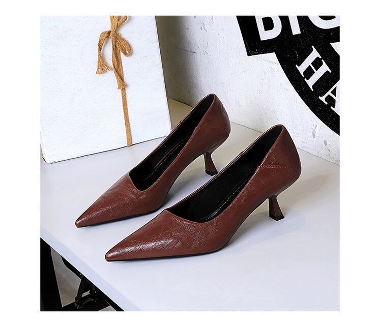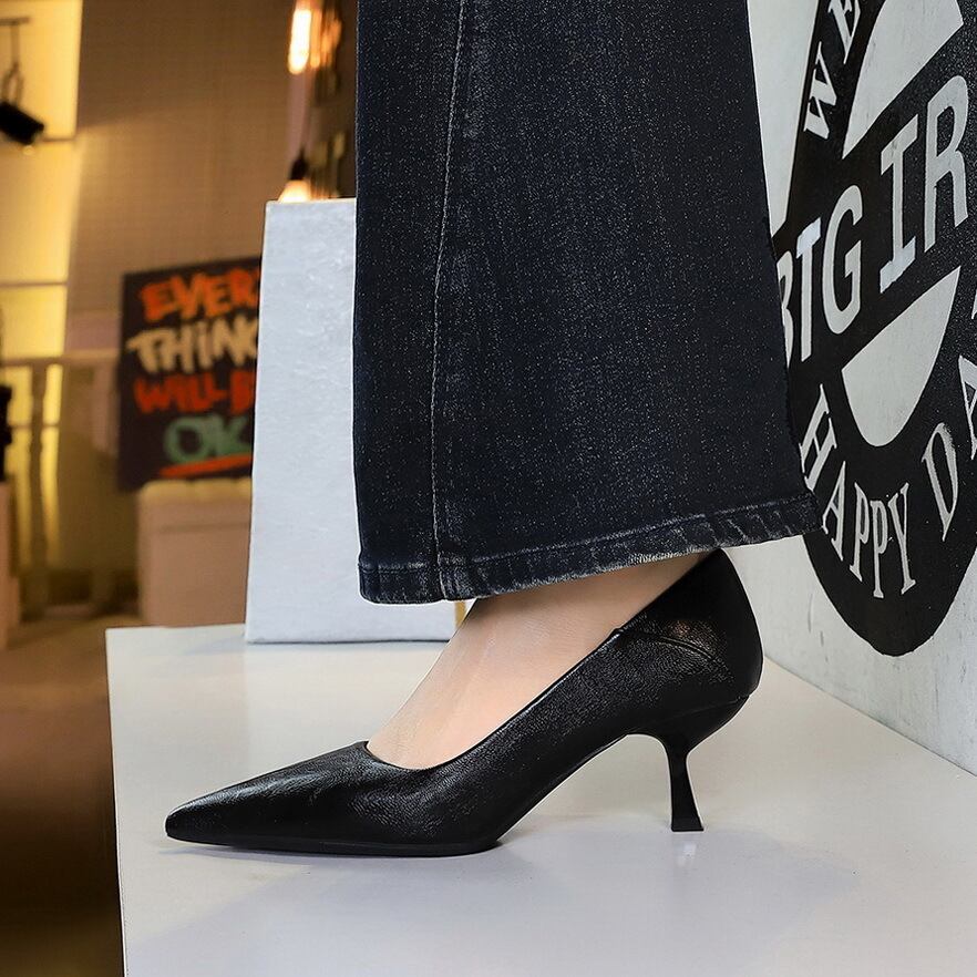 大人可愛いポインテッドトゥのミッドヒールパンプス。