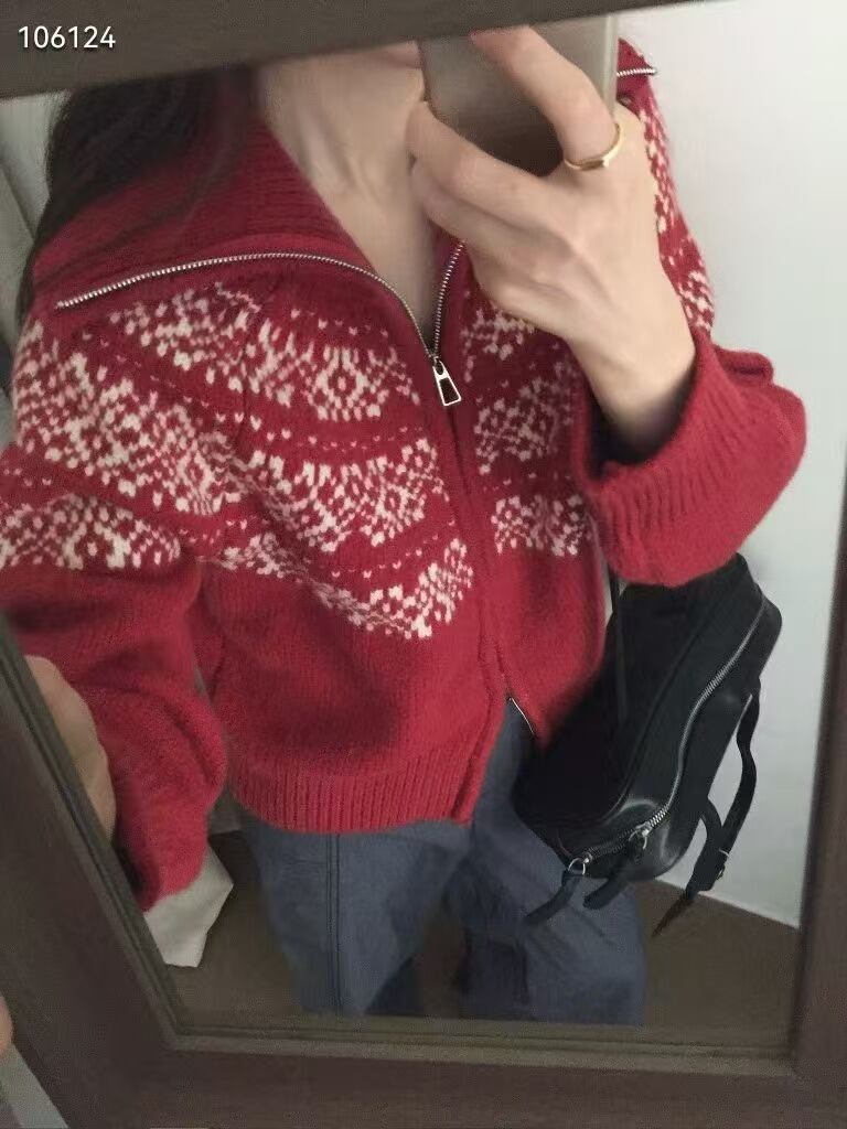 【カーディガン】 カーディガン レディース おしゃれ 韓国 春 秋 冬 20代 30代 40代 ニット カーディガン 長袖 トップス ノルディック ホワイト 白 グレー レッド 赤