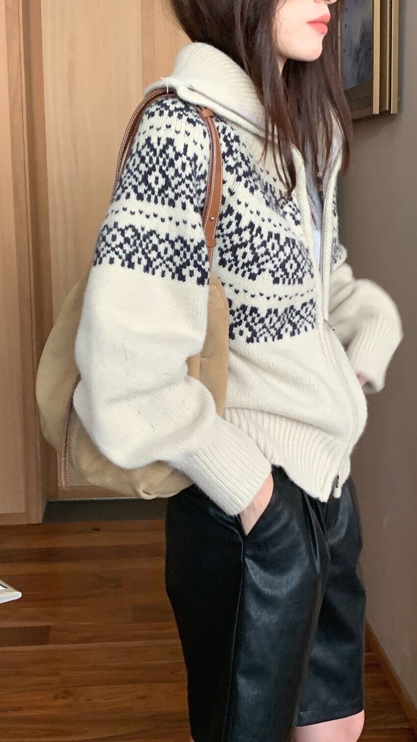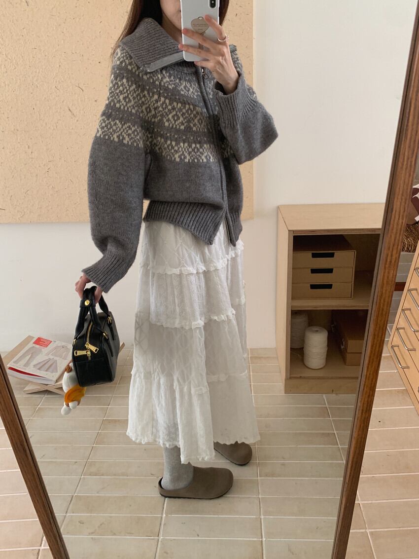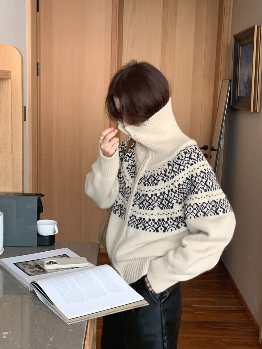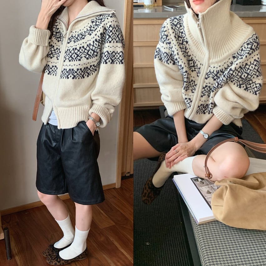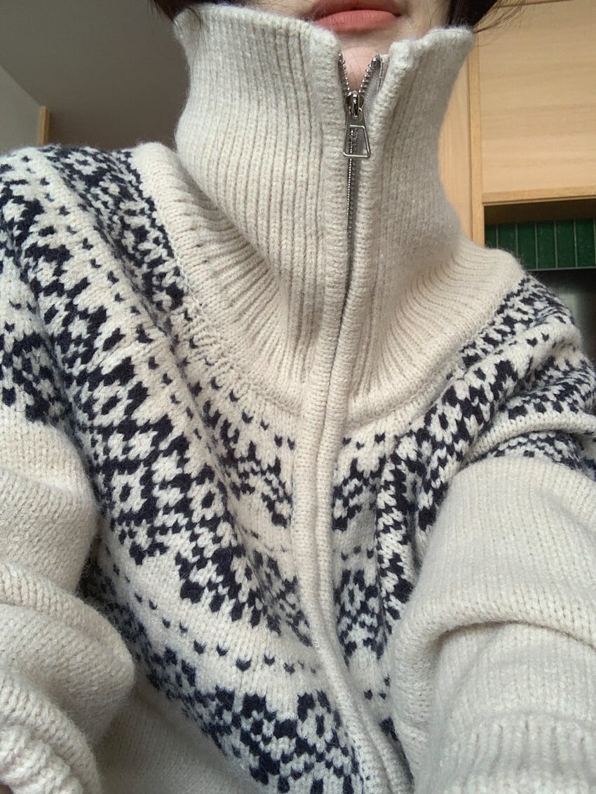 大人可愛いシンプルなノルディックカーディガン。