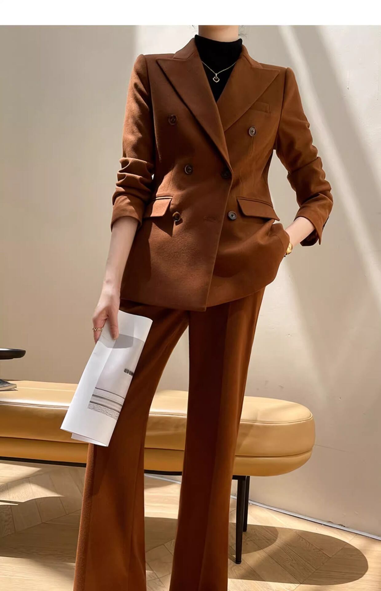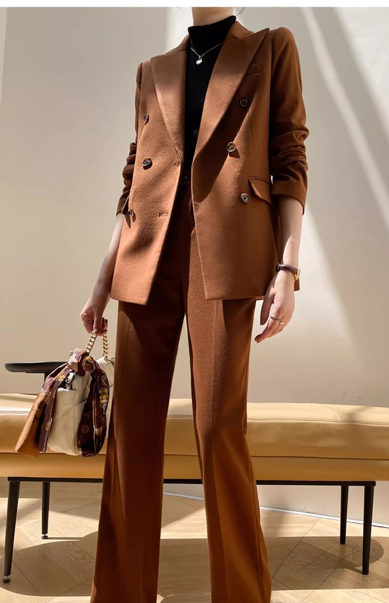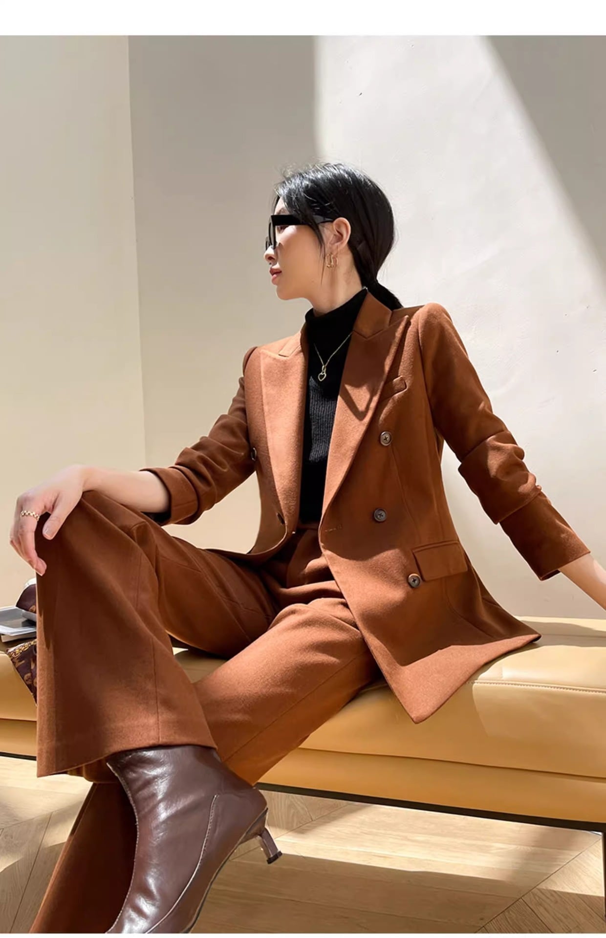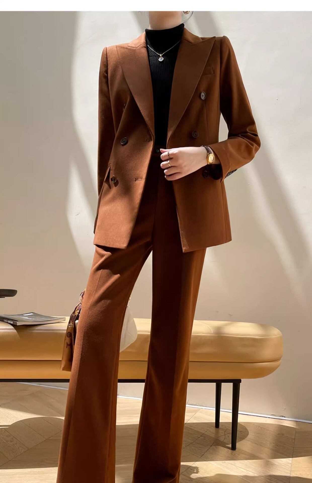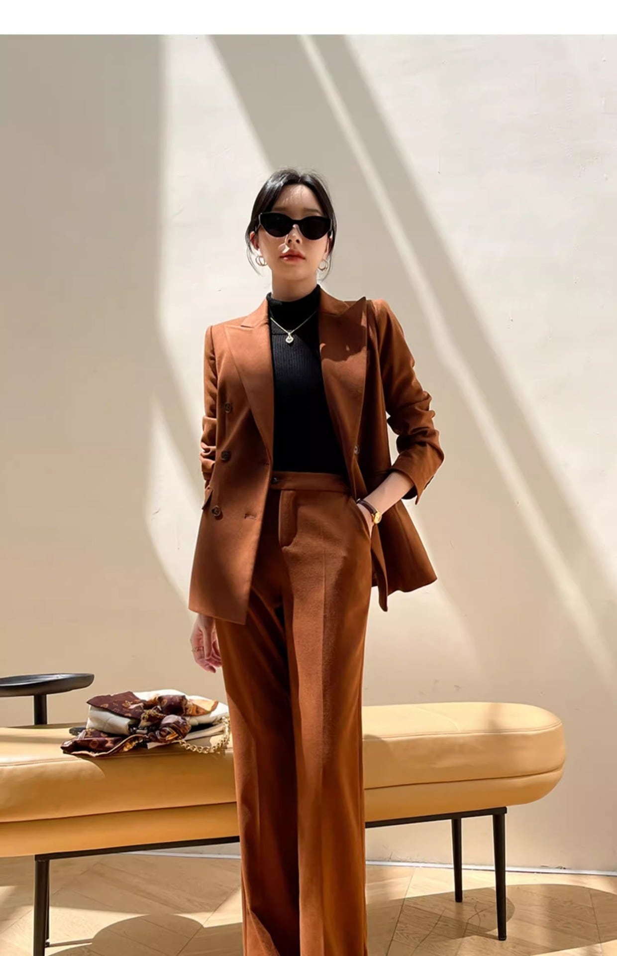 大人エレガントでシンプルなパンツスーツ。