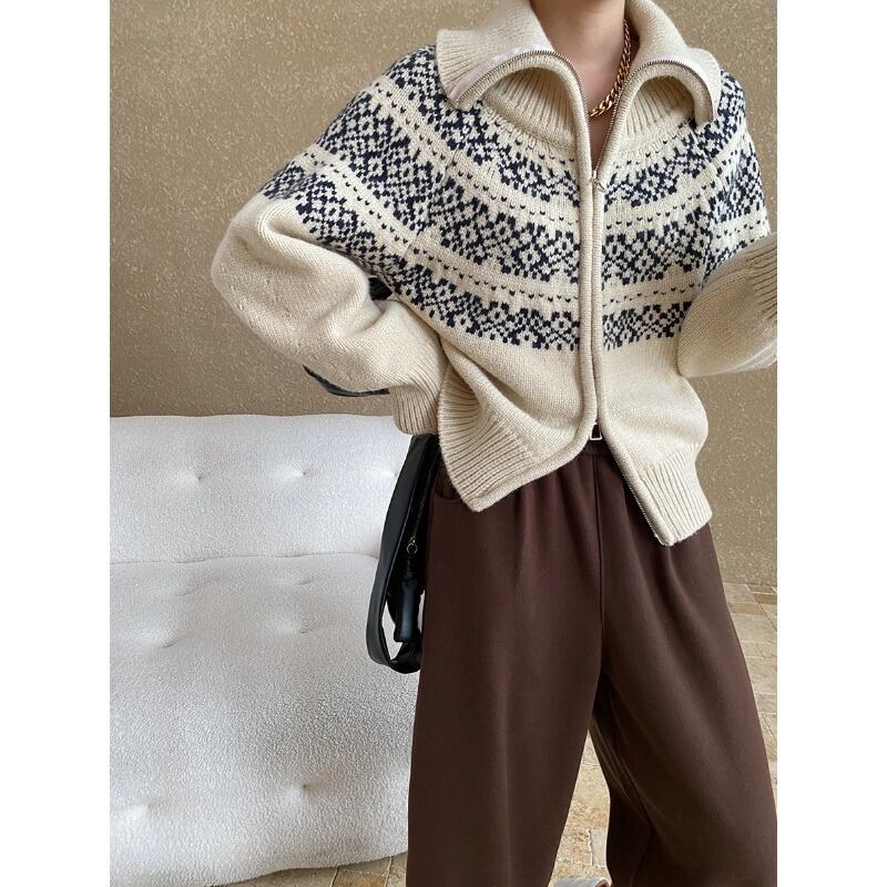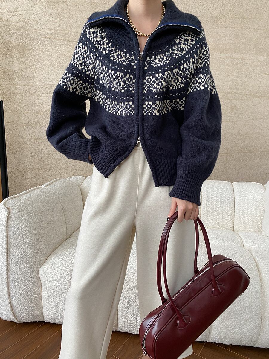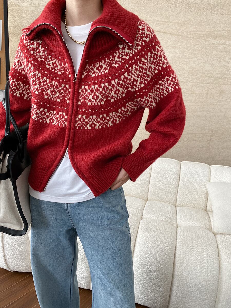 【カーディガン】 カーディガン レディース おしゃれ 韓国 春 秋 冬 20代 30代 40代 ニット カーディガン 長袖 トップス ノルディック レッド 赤 ネイビー 青 ベージュ グレー