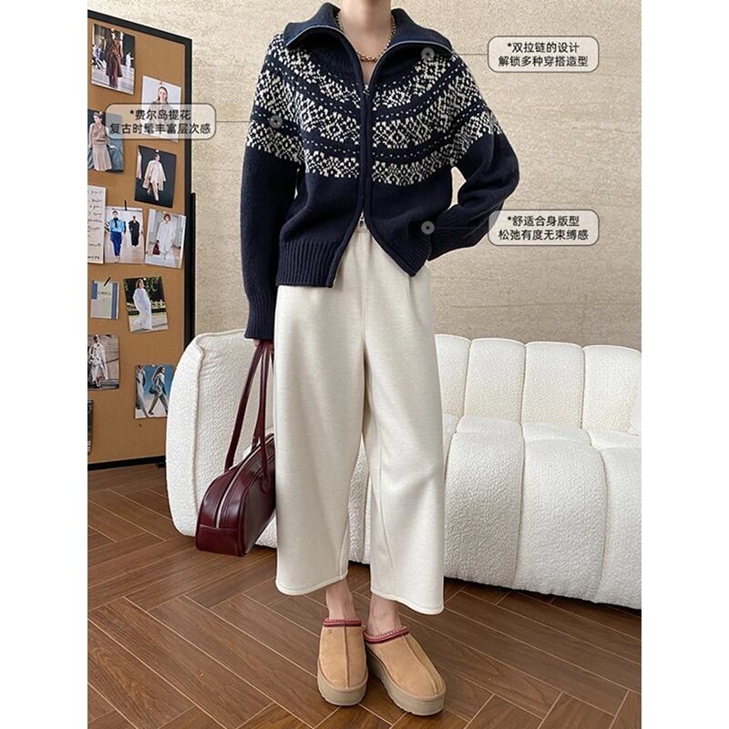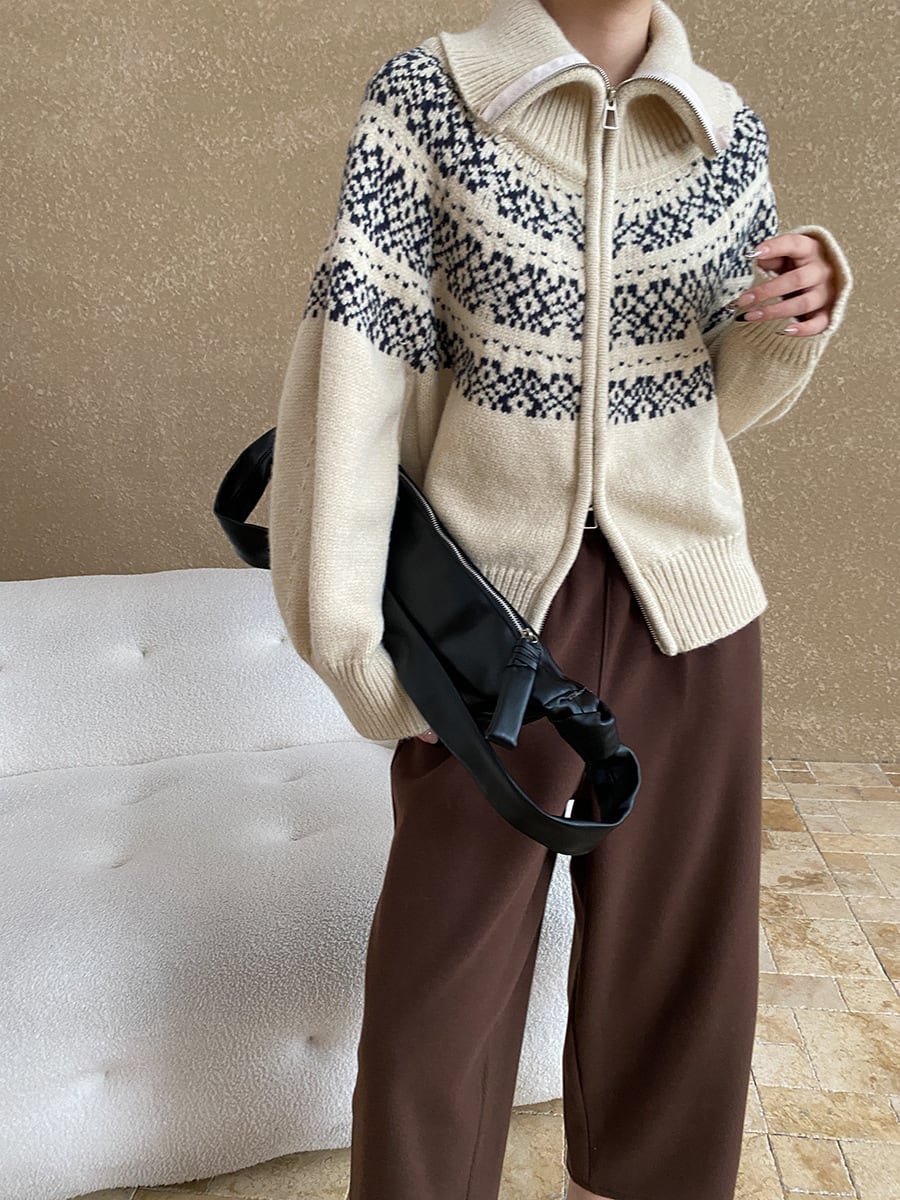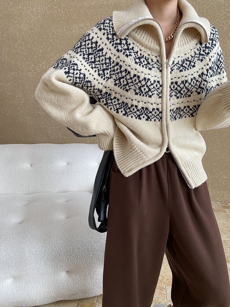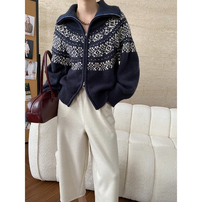 【カーディガン】 カーディガン レディース おしゃれ 韓国 春 秋 冬 20代 30代 40代 ニット カーディガン 長袖 トップス ノルディック レッド 赤 ネイビー 青 ベージュ グレー