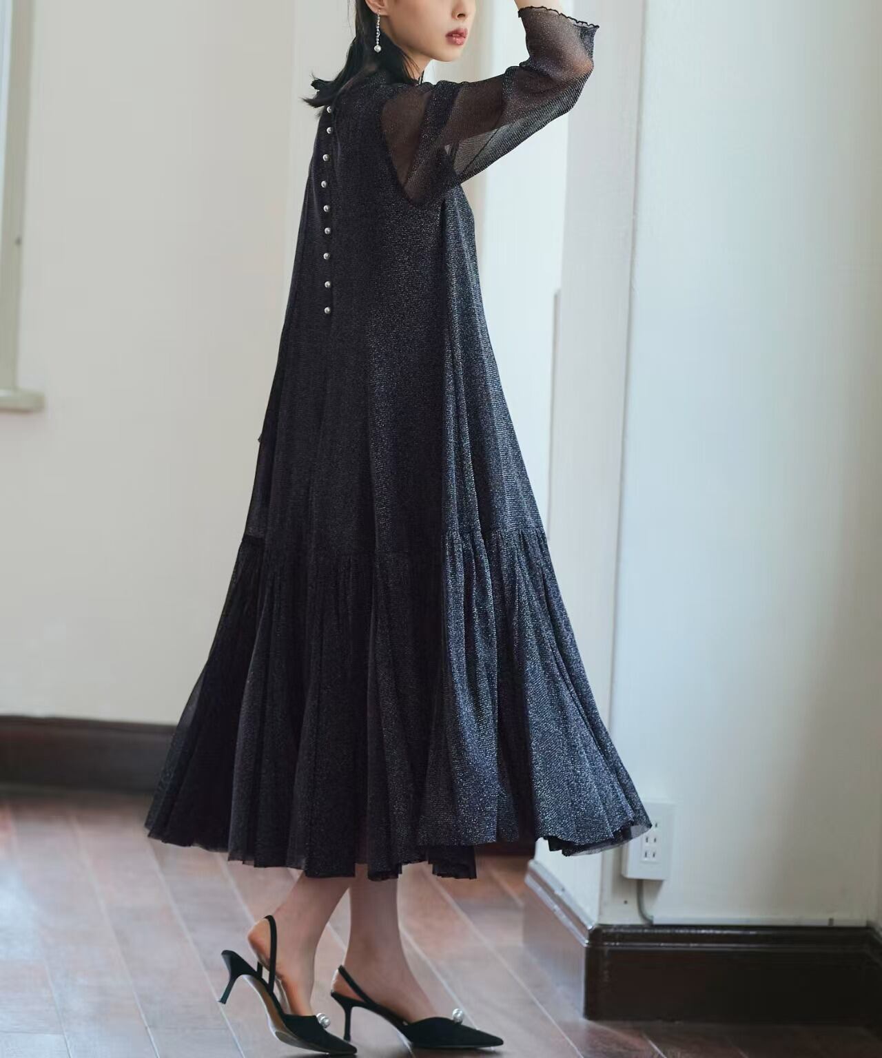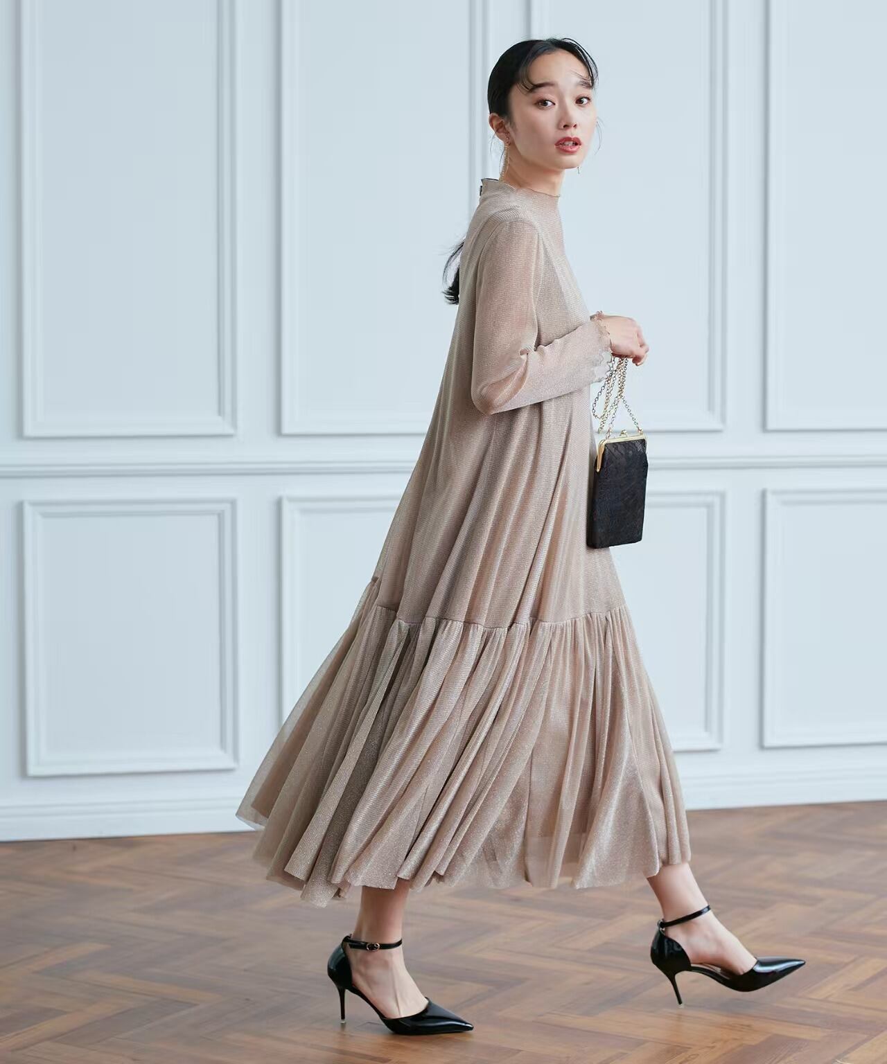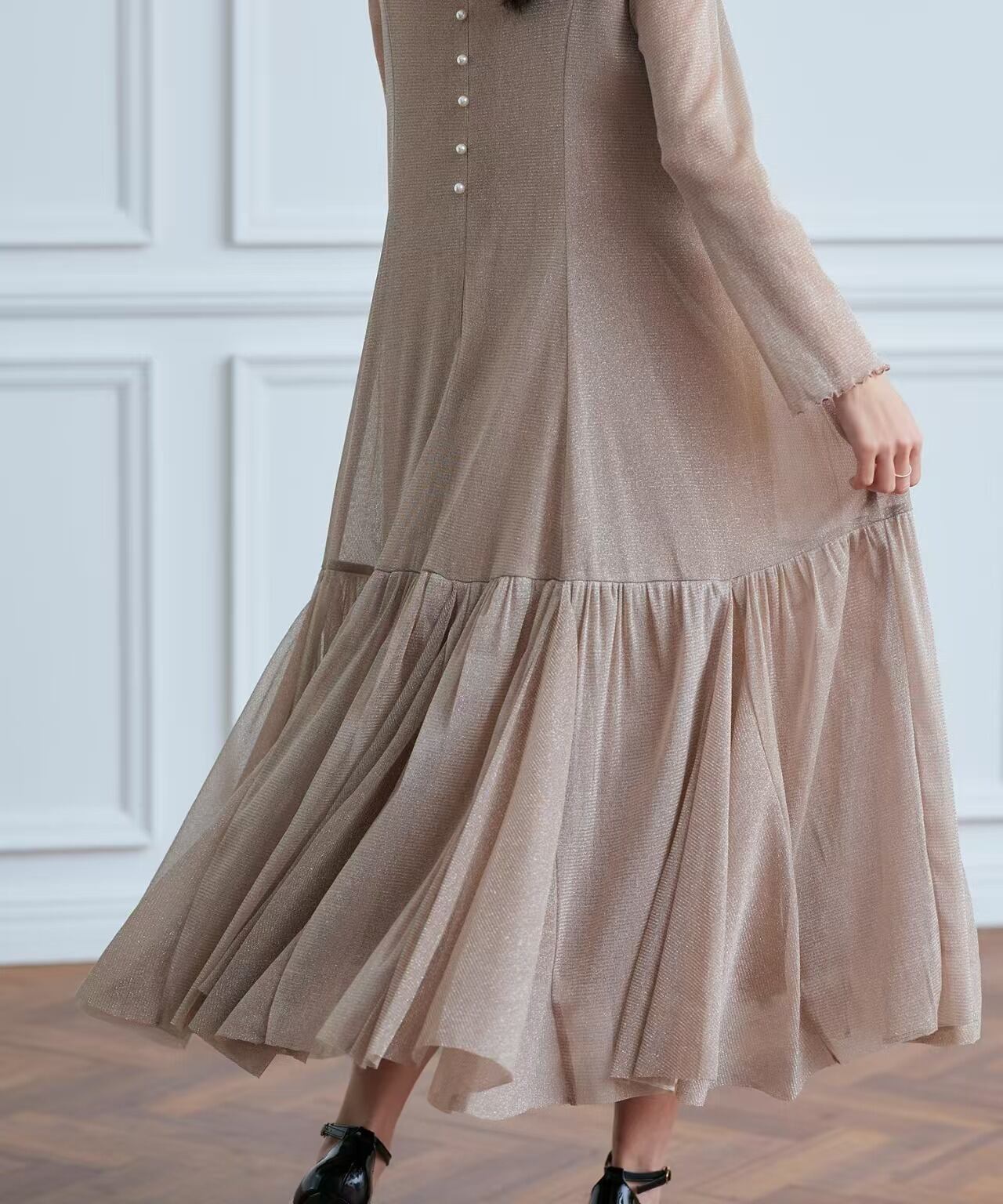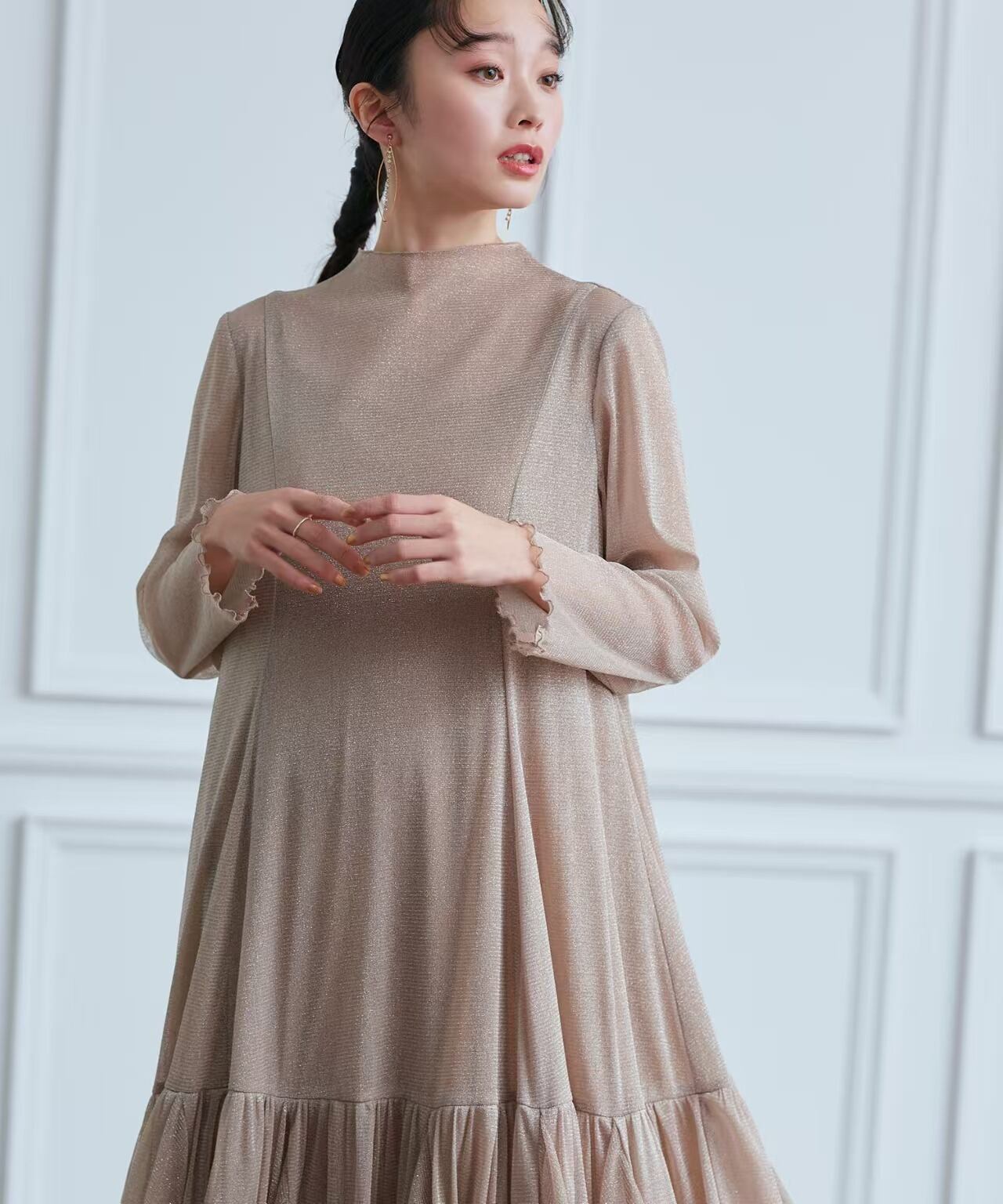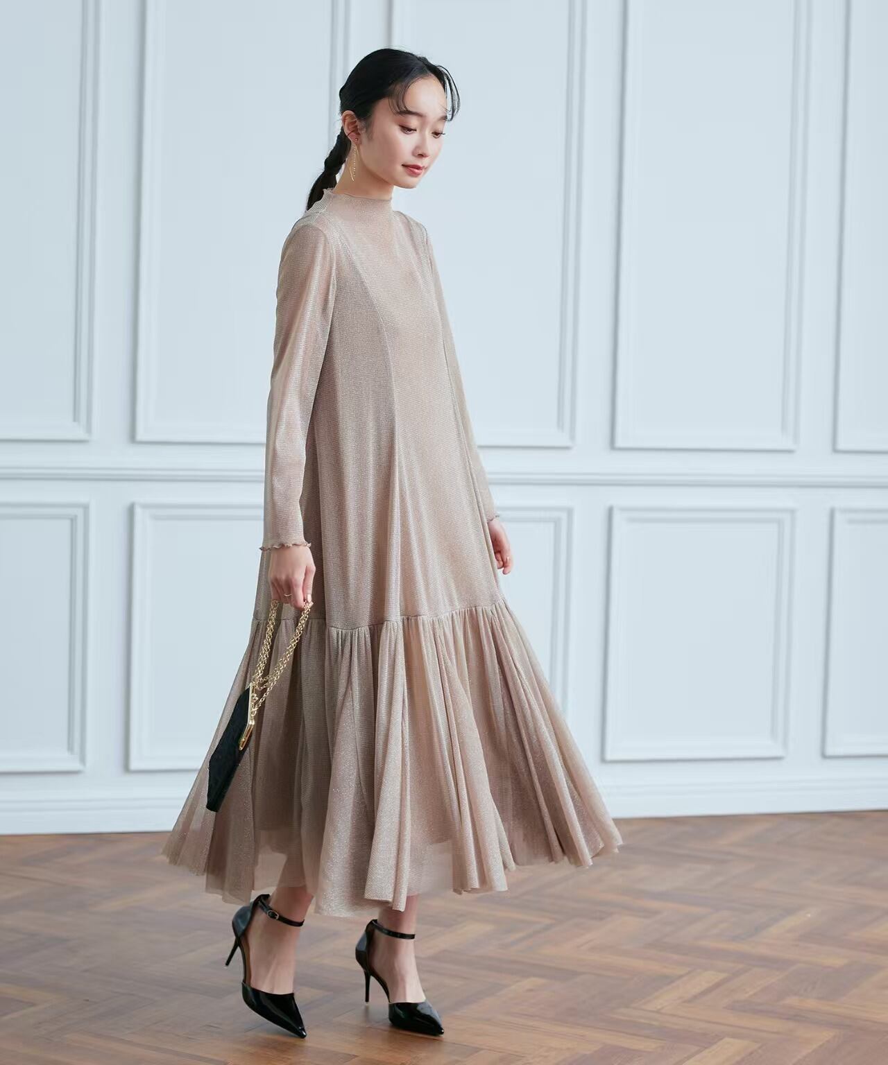 大人可愛いラメチュールワンピースドレス。