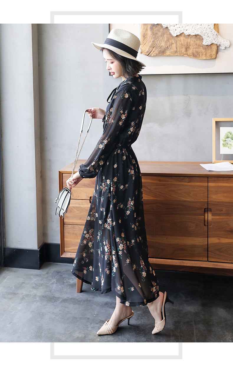 大人エレガントなシフォン素材の花柄ワンピース。