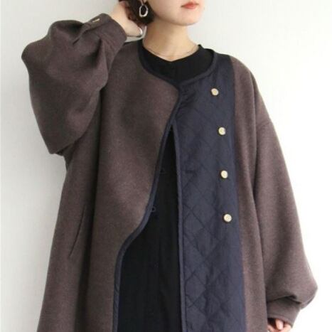 大人カジュアルなオーバーサイズのノーカラーコート。
