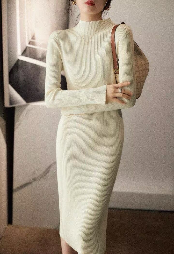 【ワンピース】 ワンピース レディース おしゃれ きれいめ 可愛い 春 秋 冬 ミモレ ワンピース 20代 30代 40代 ワンピース 春秋 ワンピースドレス 韓国 ワンピース ニット ワンピース ブラック 黒 ホワイト 白 ダークグレー ベージュ S M L XL