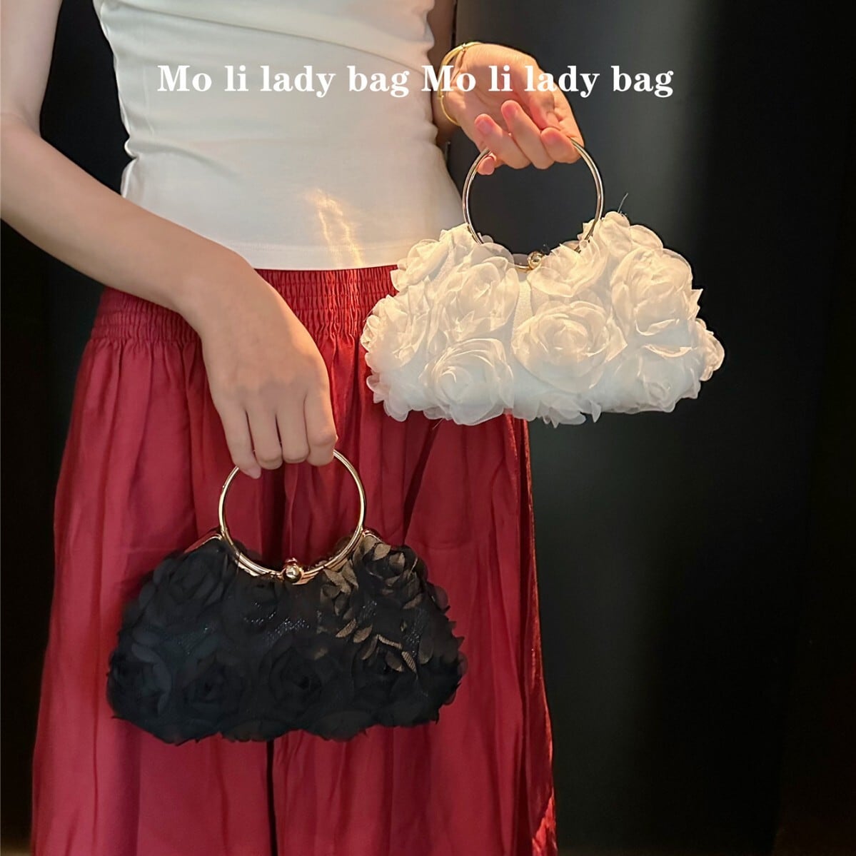 大人エレガントなお花モチーフのパーティーバッグ。