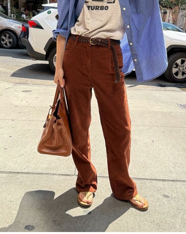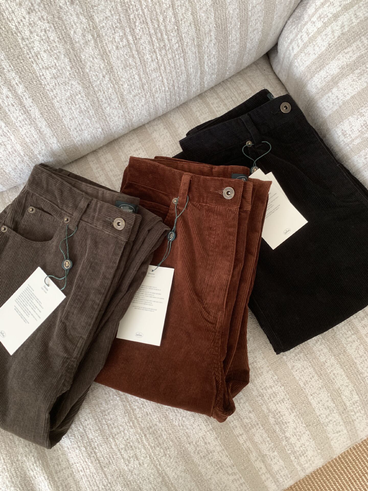 ストレートシルエットで足のラインをナチュラルにカバー。