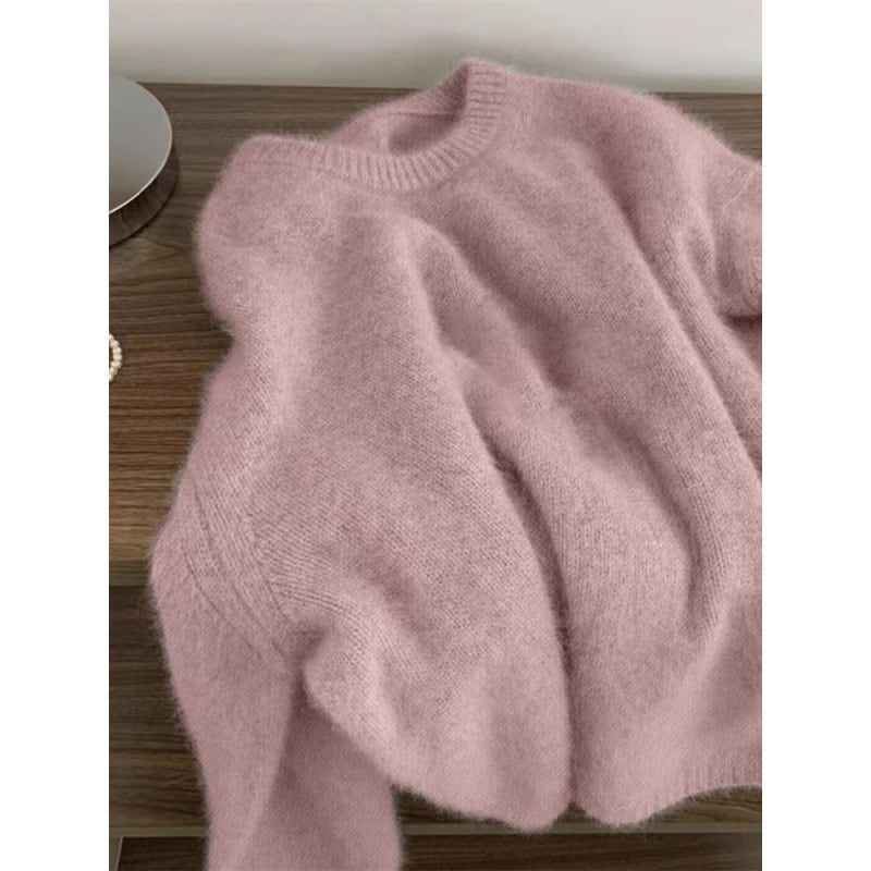 ふわふわ素材の大人可愛いニットセーター。