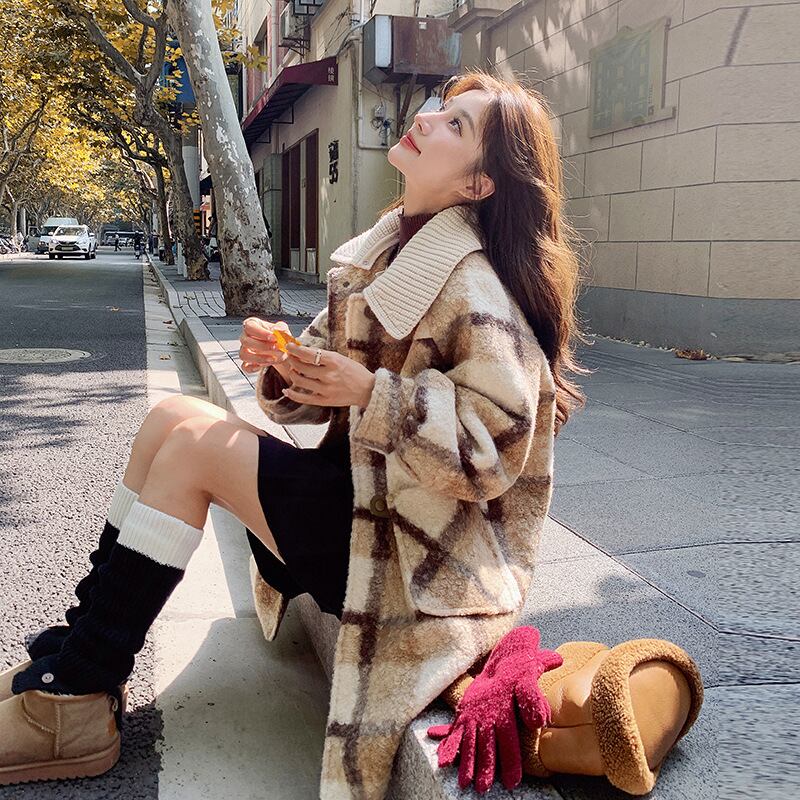 大人カジュアルなチェック柄のミドル丈チェスターコート。