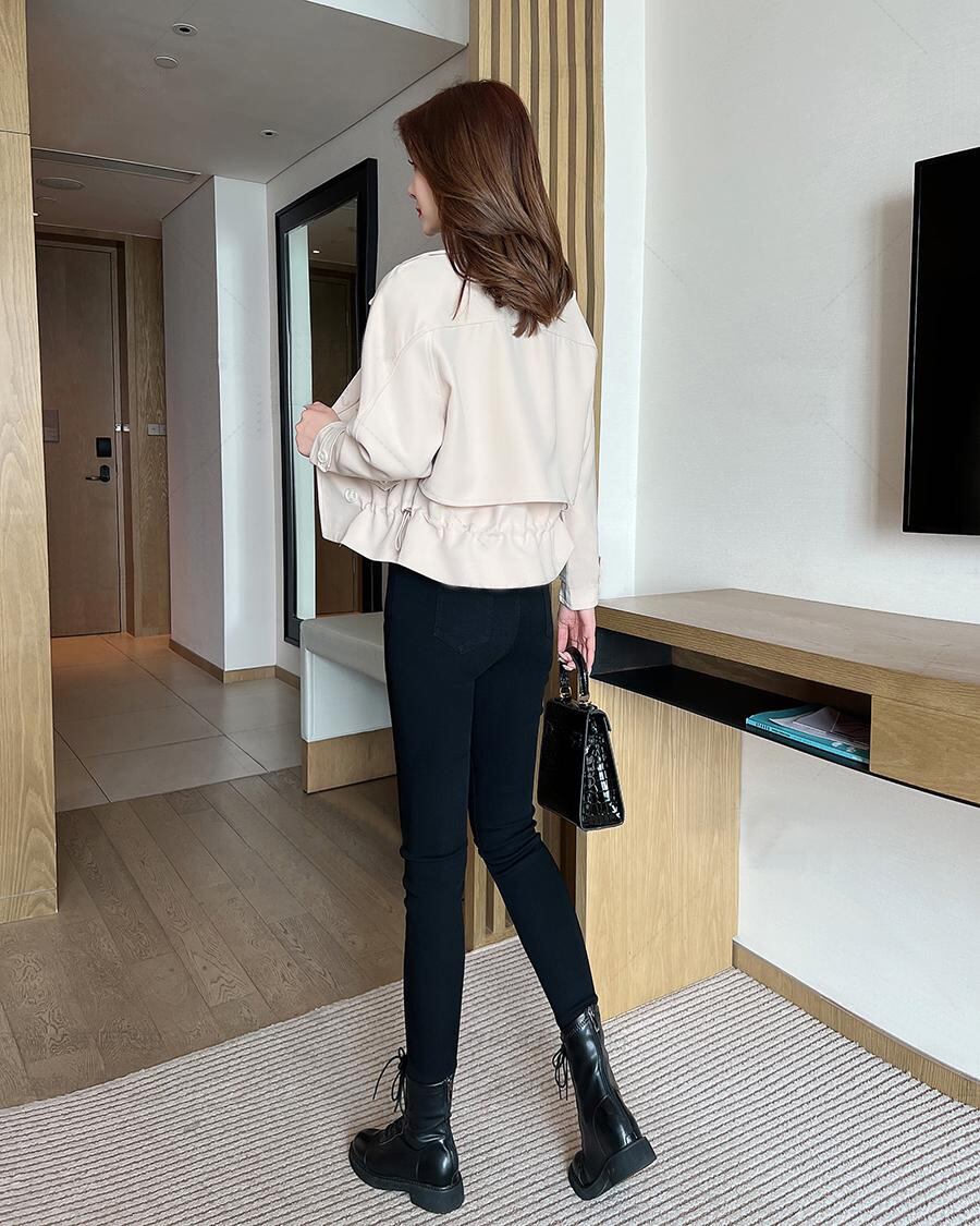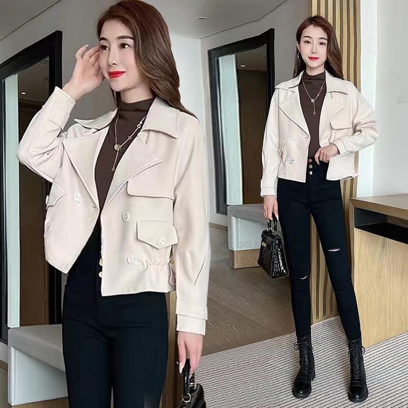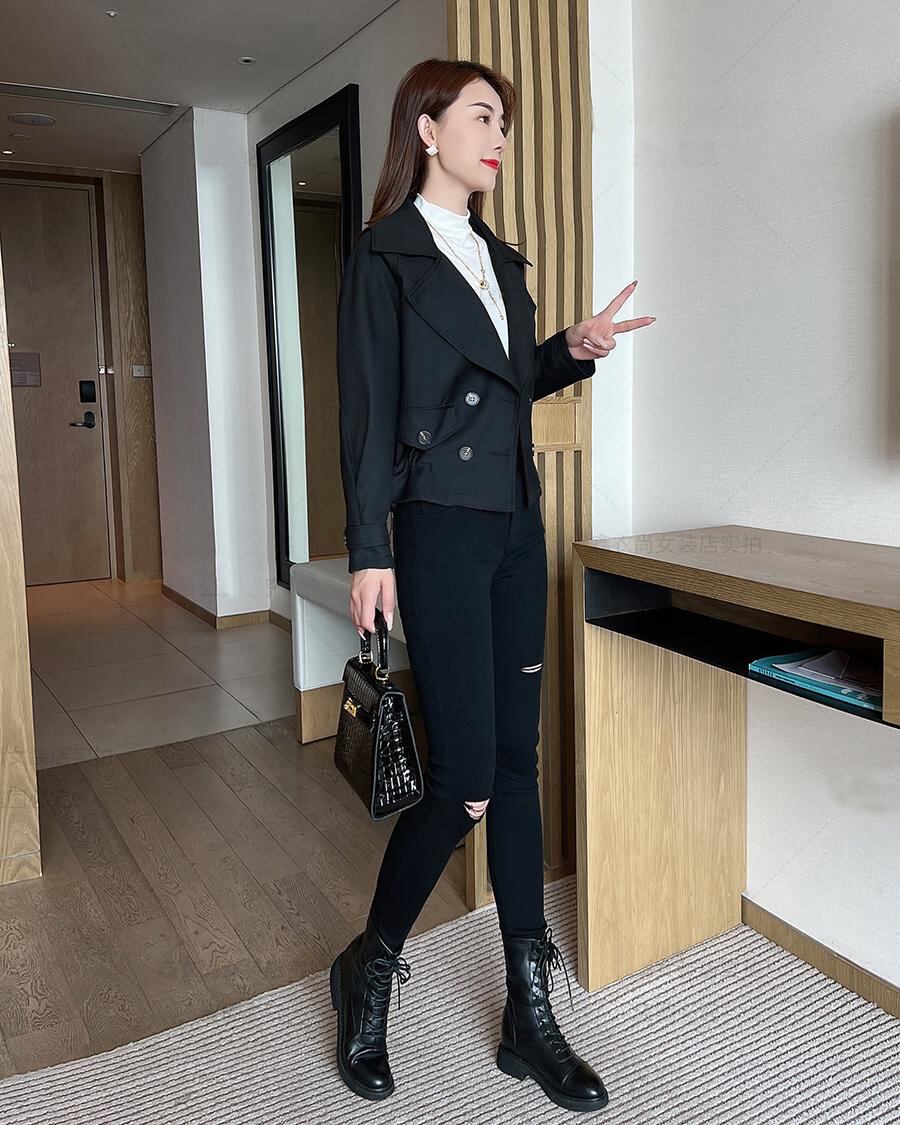 大人可愛いショート丈のライダース風トレンチコート。