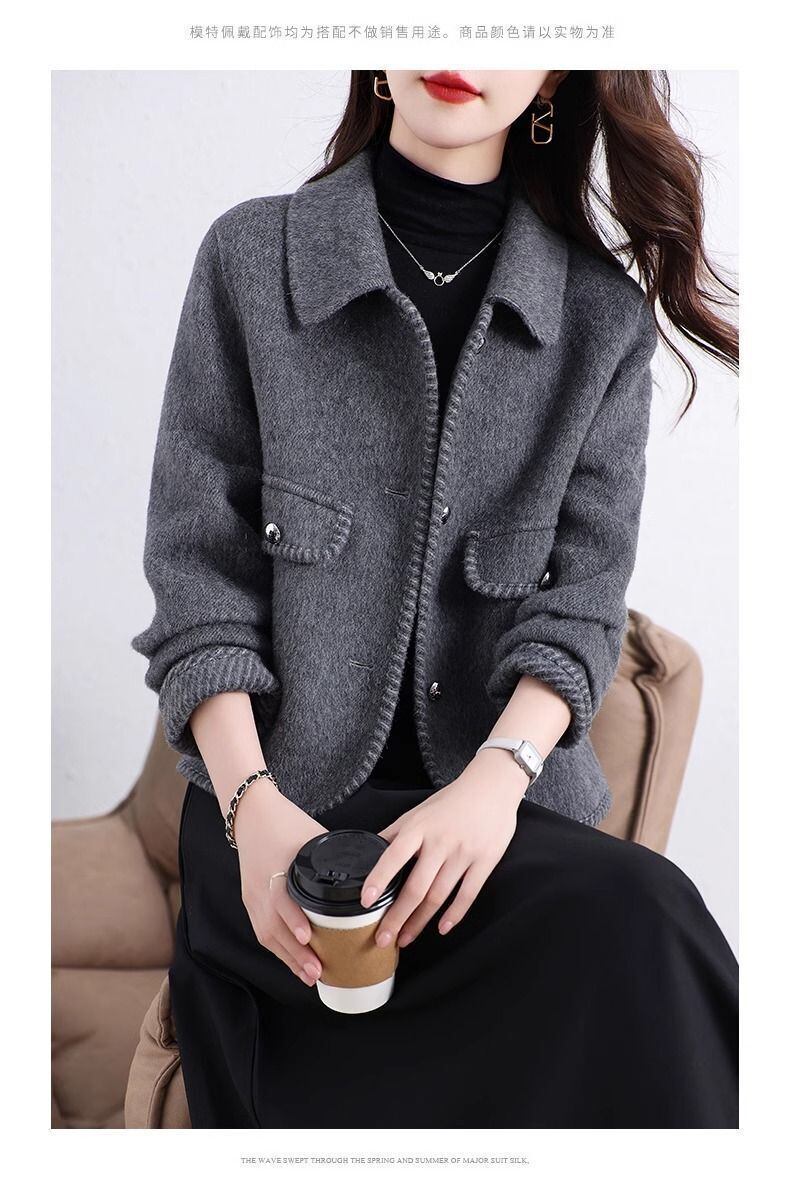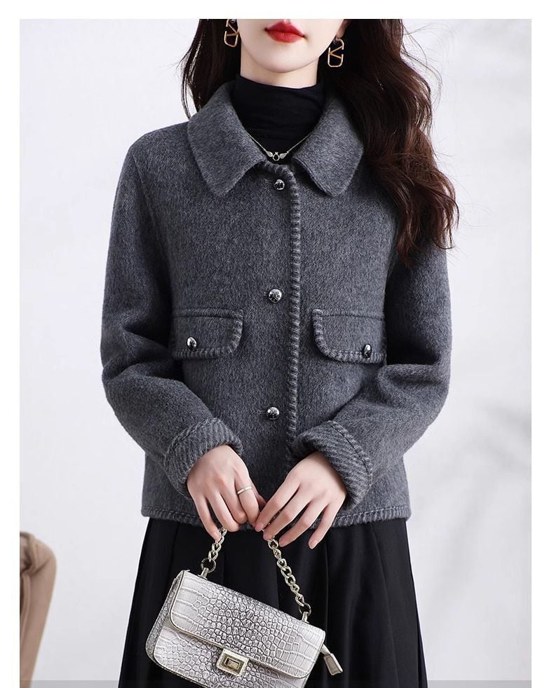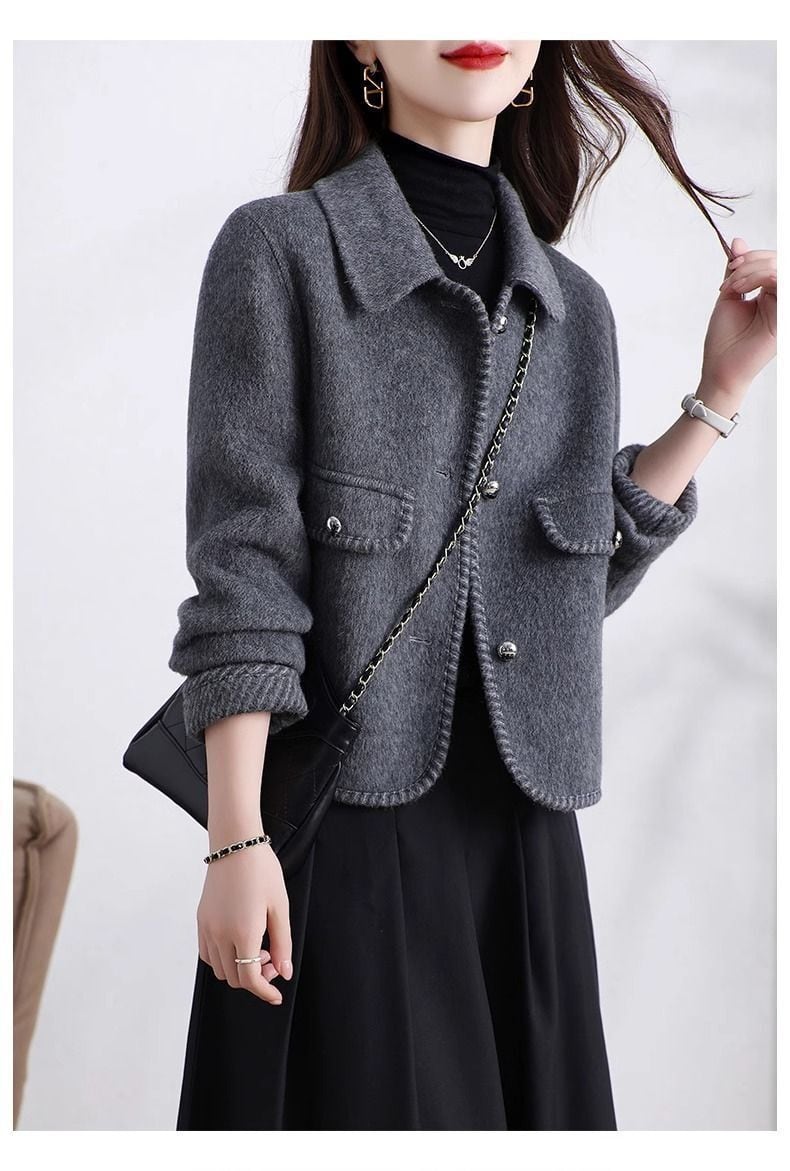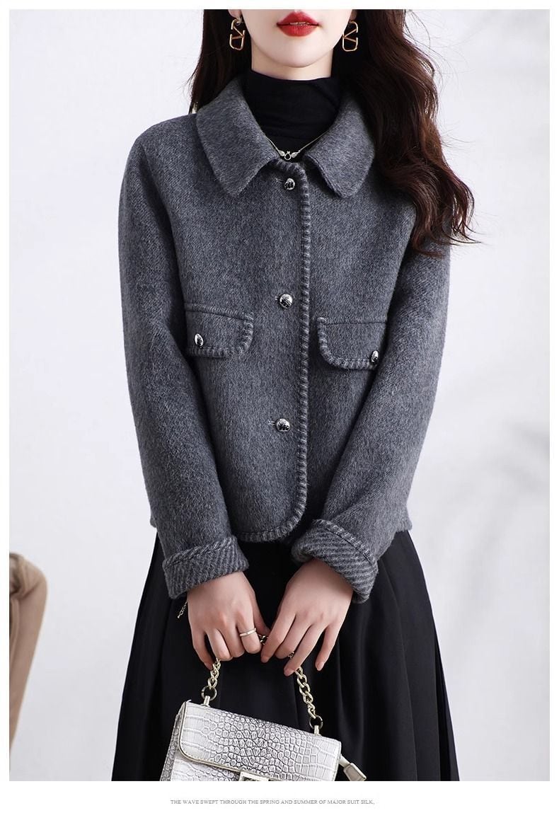 ちょこんと付いた襟が大人可愛いジャケットコート。