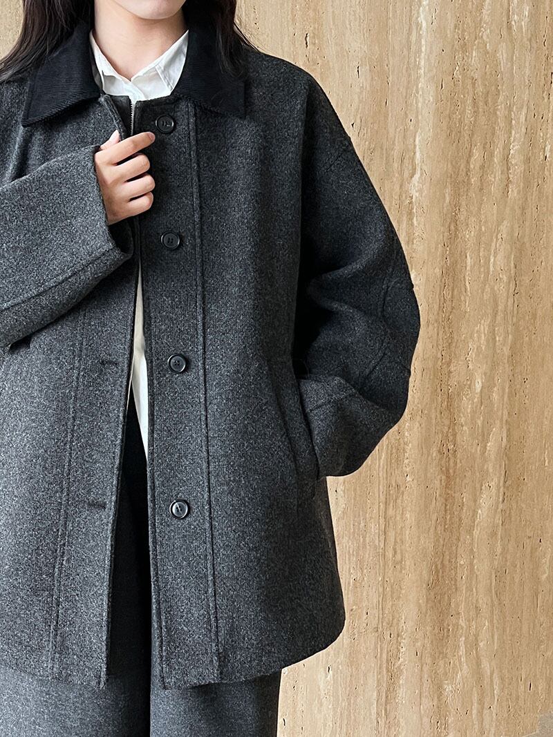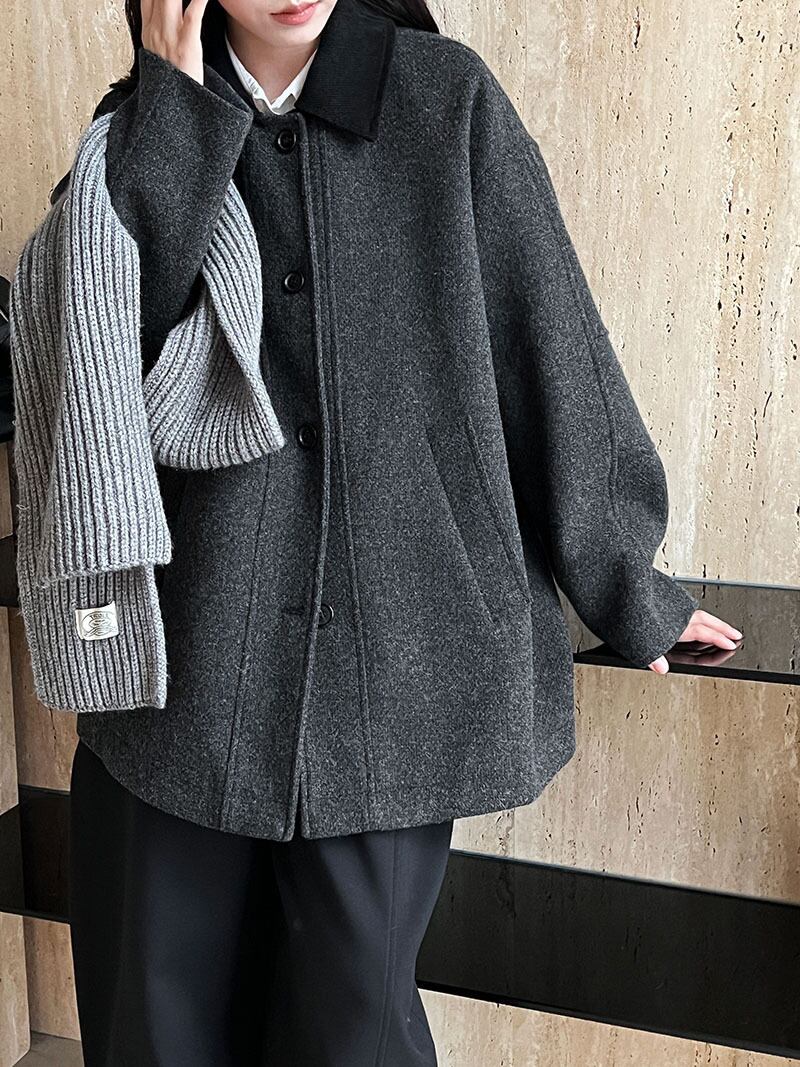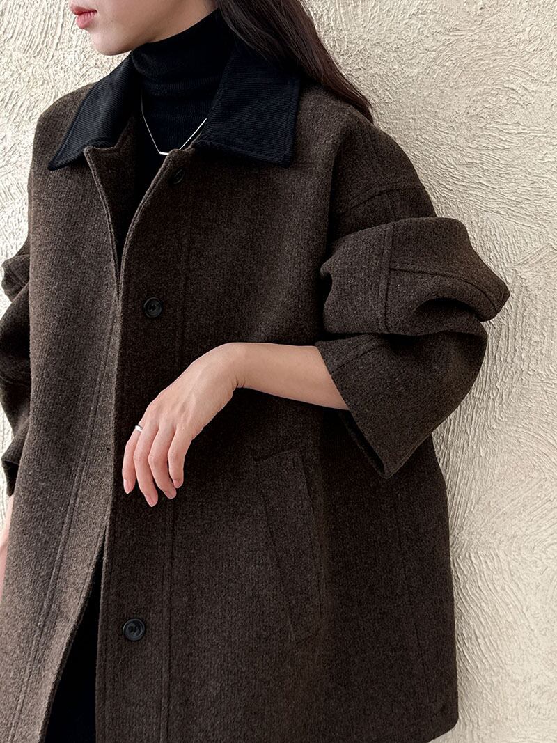ちょこんと付いた襟が大人可愛いバイカラーコート。