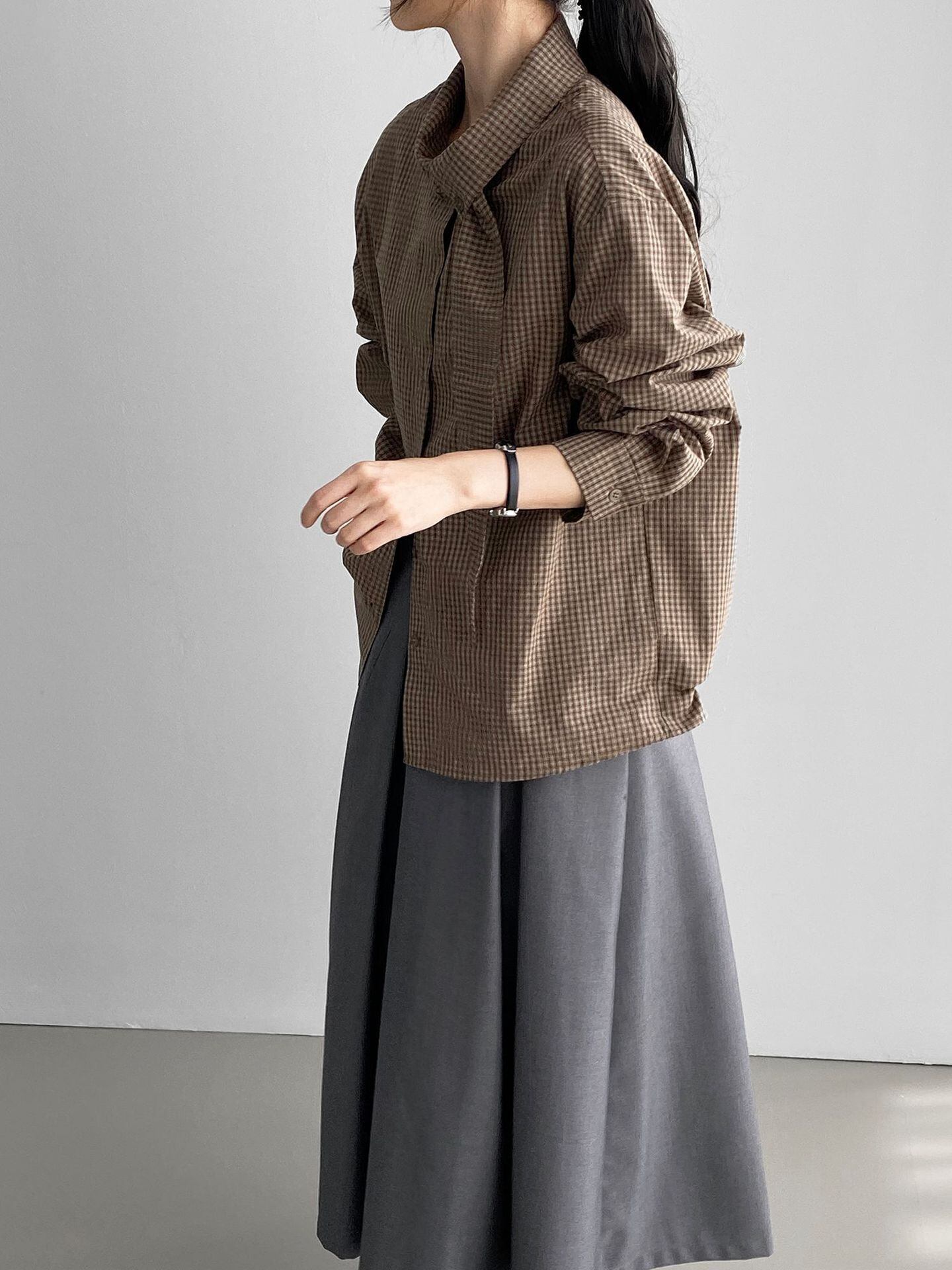 プリーツツカートとの甘めコーデやワイドパンツとのコーデもおすすめ。