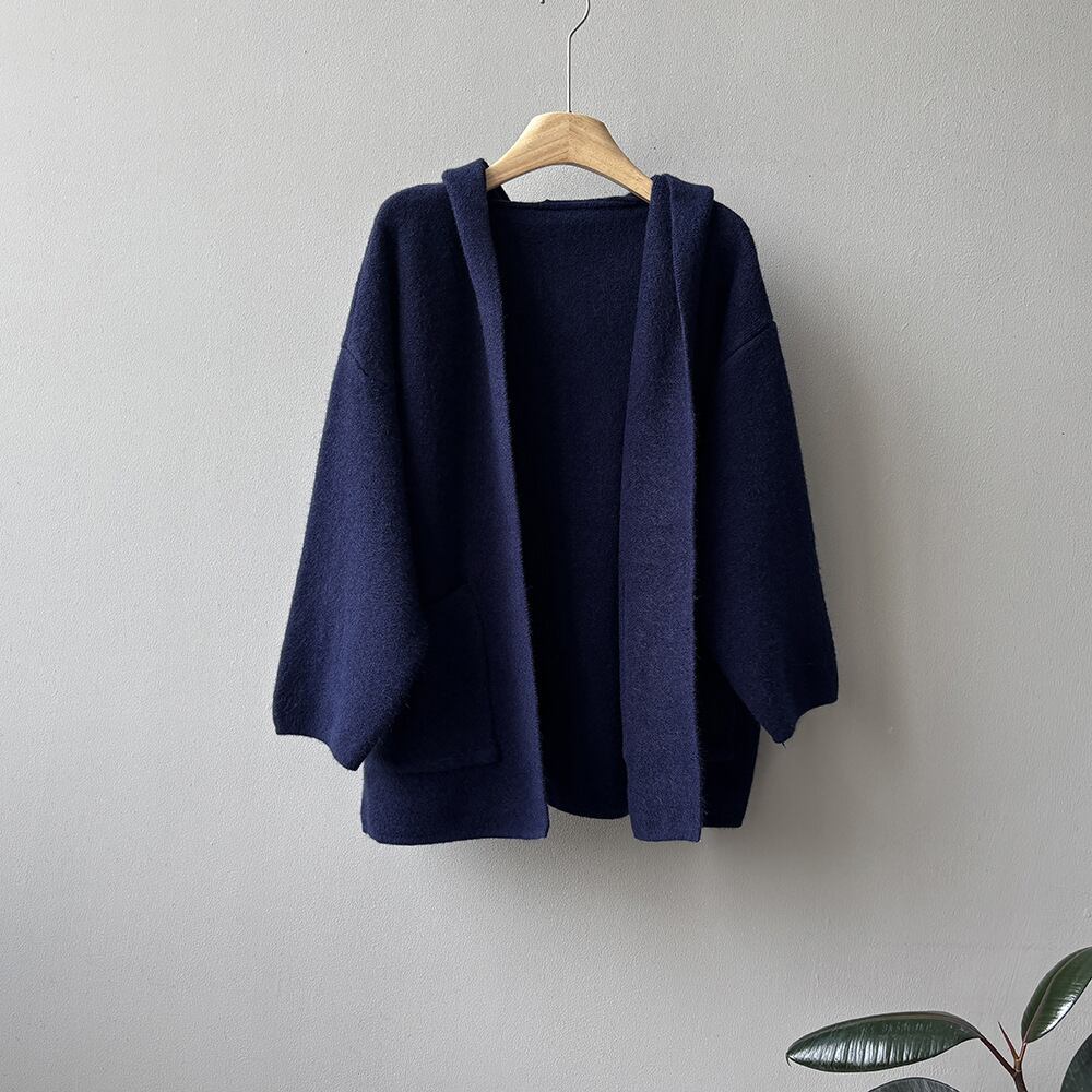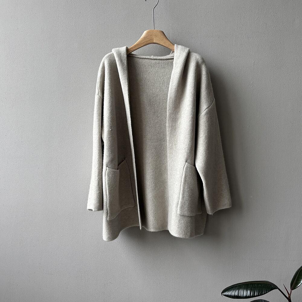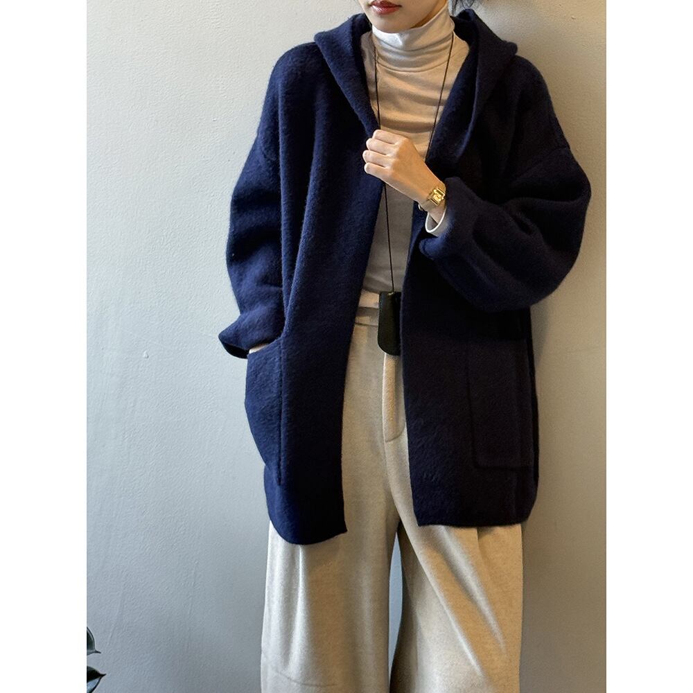 お尻までしっかり隠れるミドル丈のカーディガン。
