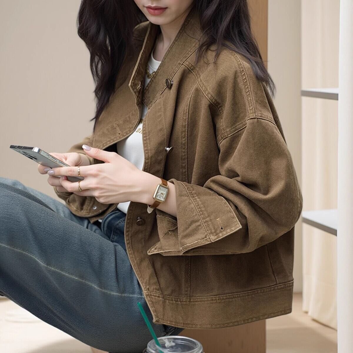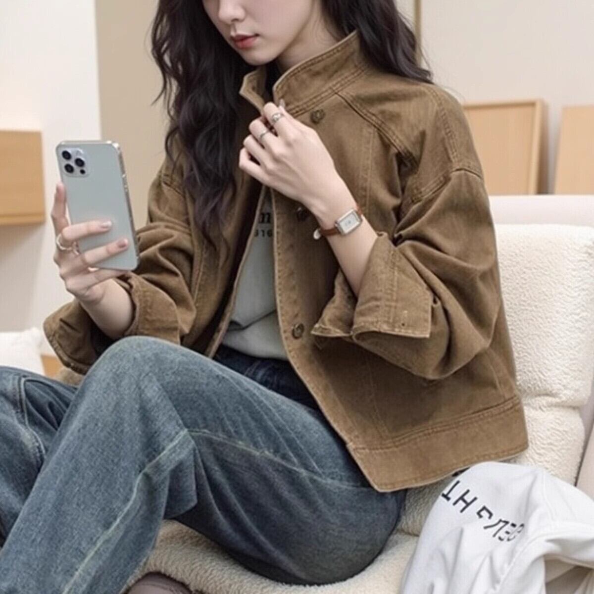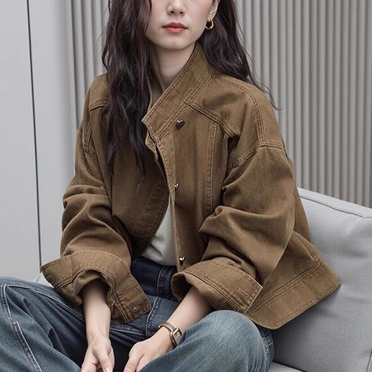 【ジャケット】 デニム ジャケット レディース アウター 春 秋 冬 20代 30代 40代 デニムジャケット ミドル ジャケット アウター ジージャン gジャン デニム きれいめ 可愛い かっこいい キャメル 茶色 S M L XL
